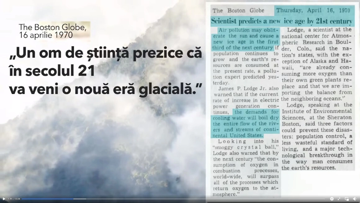 Afirmația lui Răzvan Dumitrescu despre documentarea extensivă din spatele reportajului merită o privire separată. Din cele 15 capturi de ecran cu articole din presă folosite pentru a ilustra „confuzia” experților, 12 sunt luate dintr-o singură sursă: un articol din 2019 intitulat „Wrong Again: 50 Years of Failed Eco-pocalyptic Predictions”. Articolul este publicat pe site-ul Competitive Enterprise Institute (CEI), o asociație conservatoare americană fondată în 1984, finanțată în parte de ExxonMobil și condusă de Myron Ebell, unul dintre cei mai proeminenți negaționiști americani ai schimbărilor climatice.