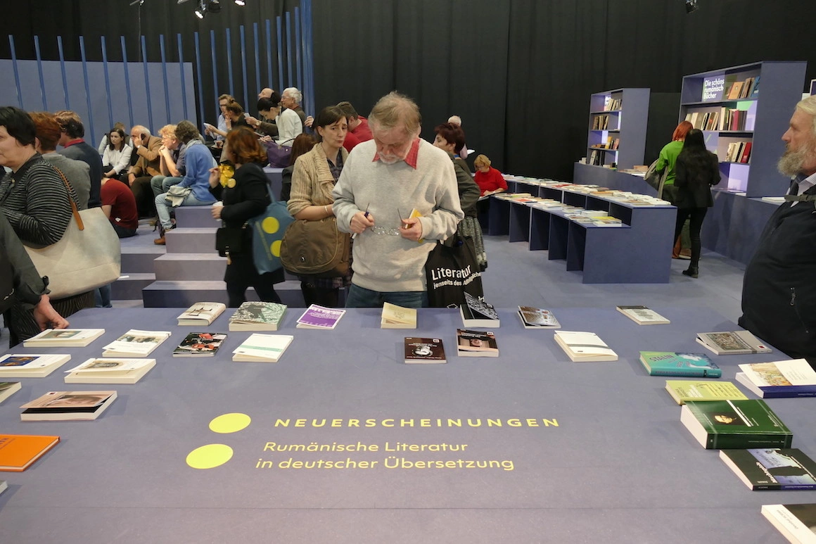 Toți au fost, totuși, de acord că standul României, creat de Attila Kim, același arhitect care a făcut pavilionul țării la bienala de la Veneția (în anul cu Ghenie), arată foarte bine. E un spațiu vast, construit ca un amfiteatru, cu secțiuni pentru librărie, cărți pentru copii și tineri, non-ficțiune, clubul ilustratorilor, alternative press (cu volume de Sorina Vazelina, albume foto de Tudor Borduz și multe lucrări de licență de la arte - majoritatea tipărite independent), cărți românești traduse în germană, cărți românești în original, plus scenă cu loc pentru public.