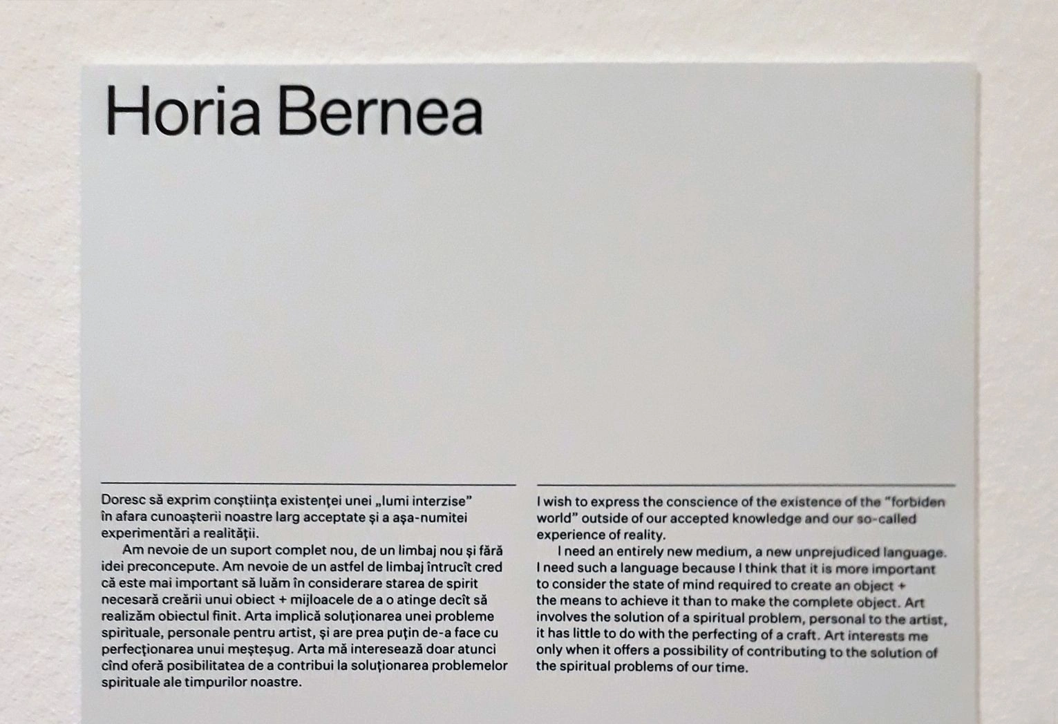 Până să ajungem însă acolo, să ne bucurăm încă de momentul anilor 1970, în care această artă filosofică nu fusese împinsă încă în fundătura „necesară pentru supraviețuire” a unei arte religioase. Vreau să subliniez că nu privesc cu lipsă de interes munca Grupului Prolog sau a Grupului 9 + 1, din care face parte și Horia Bernea. Nici ideea unei arte religioase nu mi se pare lipsită de înțeles.