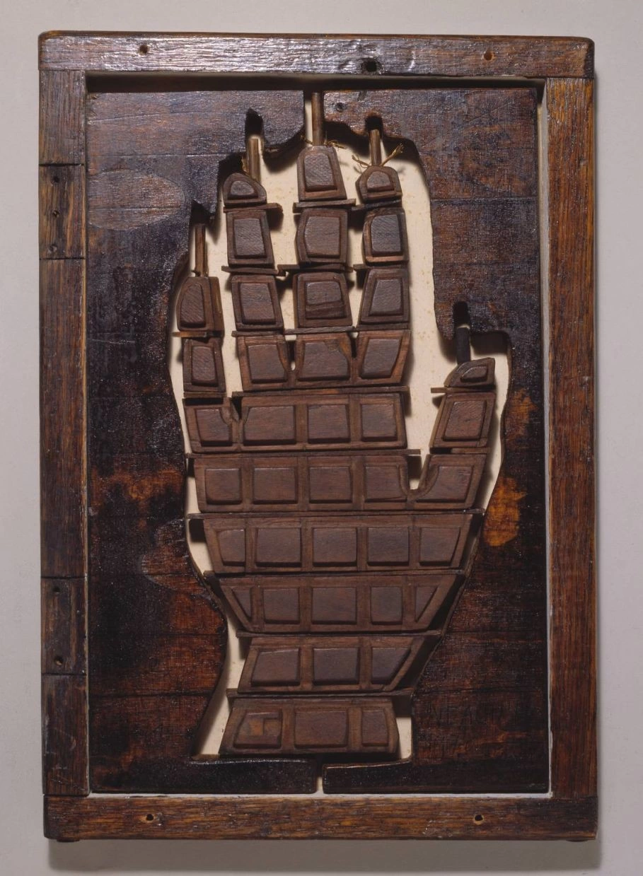 Întorcându-ne la artă, să vorbim mai bine despre o lucrare de o mare forță simbolică a lui Paul Neagu. Ea cere mai multe citiri simultane. Prima este legată de manifestul artei palpabile. Puteți să îl ascultați aici chiar pe el povestindu-și experiența de la Edinburgh, care l-a condus către o dezvoltare rapidă a artei sale în această direcție. După cum se vede și din lectura manifestului, e vorba de a deplasa atenția privitorului, în cazul sculpturii, de la simțul văzului către atingere. Am pus mai jos o imagine mărită a unei versiuni în lemn a lucrării, pentru a ne putea lămuri.