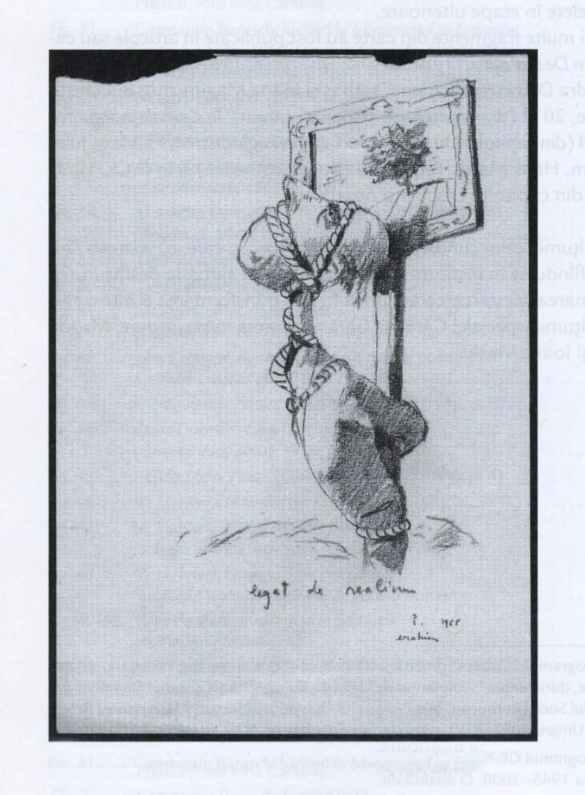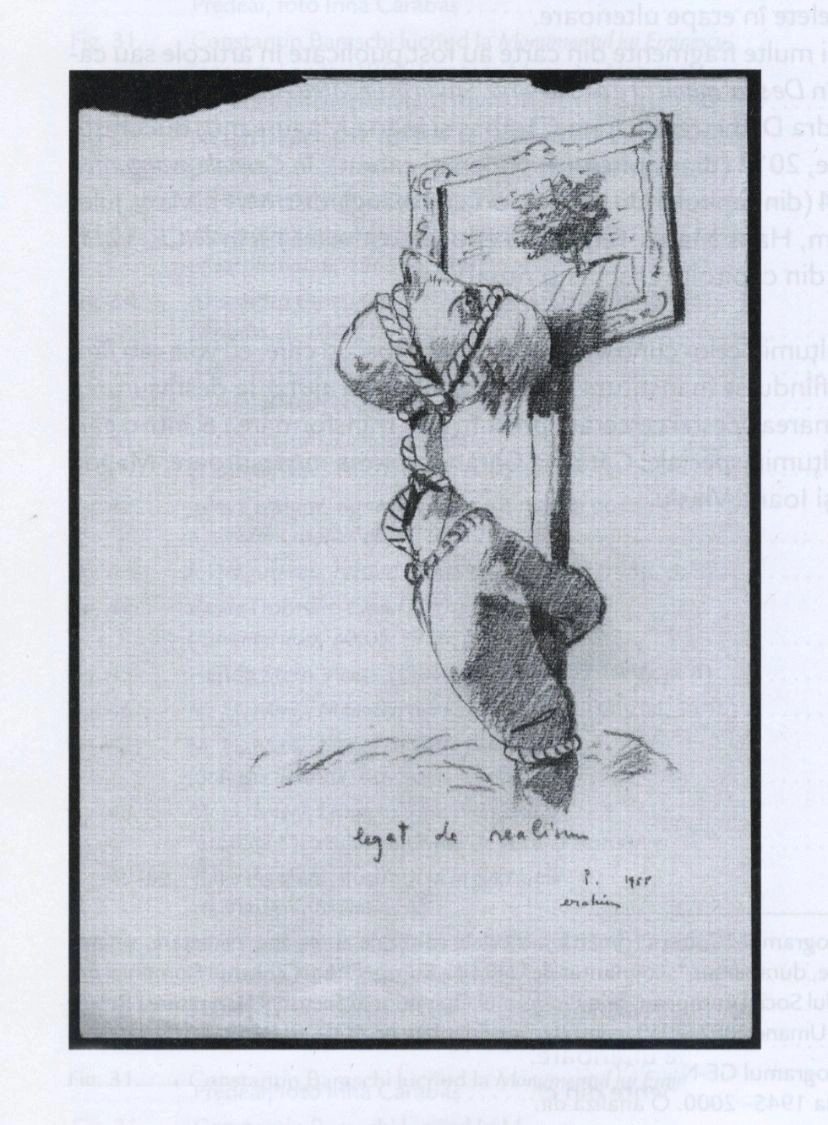 Un alt exemplu care se găsește tot la Irina Cărăbaș e un desen al lui Jules Perahim. În anii 1950, Jules Perahim ocupa și el o poziție de forță în cadrul instituțiilor artei românești. În epocă, e cunoscut drept unul dintre cei mai aprigi susținători ai realismului socialist. Și e de așteptat că, privind acest desen, contemporanii săi i-ar fi ironizat probabil duplicitatea pe care imaginea o face vizibilă.