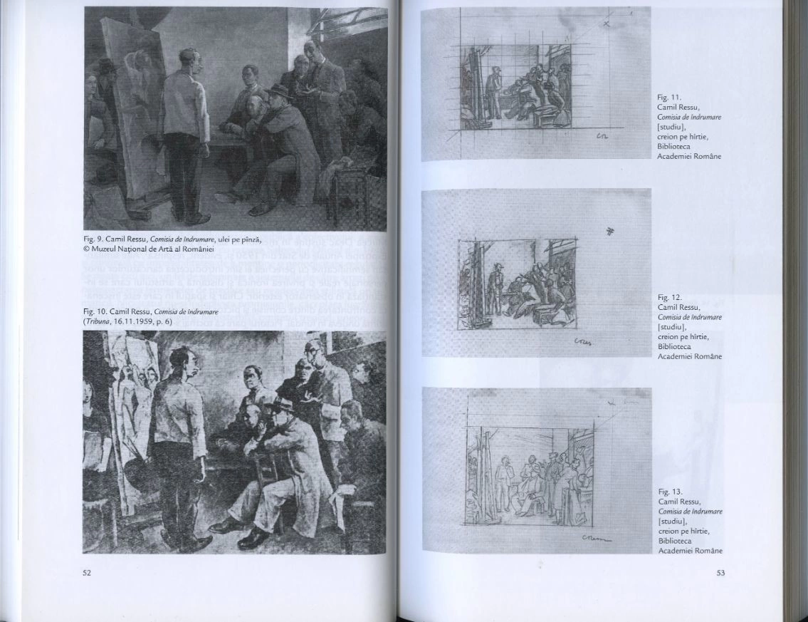 Un exemplu grăitor din anii 1950 se găsește în cartea Irinei Cărăbaș. Conform ei, Camil Ressu lucrează la o întreagă serie de imagini ce tratează subiectul „Comisiei de îndrumare”. E astfel prezentată în mod caricatural producția unui tablou din epoca realismului socialist drept întâlnirea confuză, îngrămădită și haotică dintre personajele-cheie din structura de stat și un artist oarecare. Desigur, aici nu mai vorbim de limbaj esopic sau de un dublu sens. Lucrurile sunt lăsate la vedere și totul e extrem de clar.