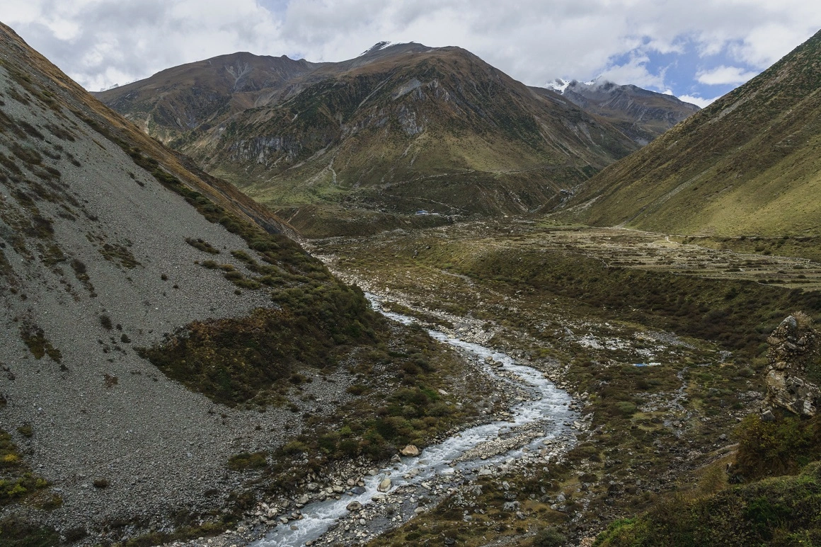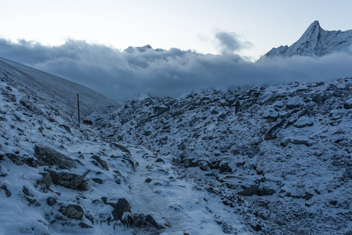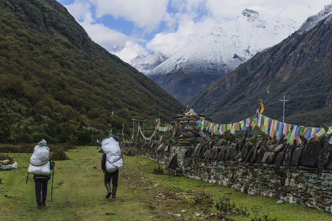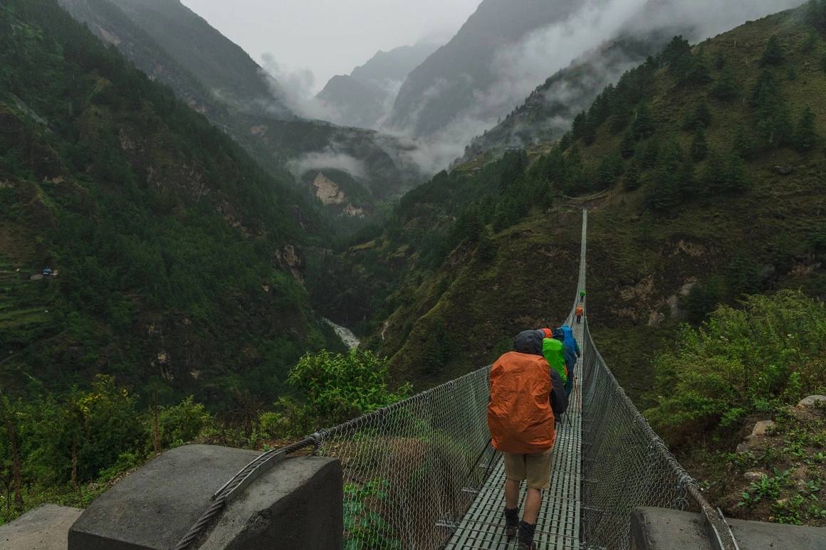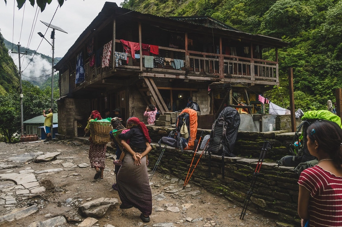 După ce se termină priveghiul, revin la grupul alături de care voi porni la drum a doua zi. Am zburat șapte băieți din România și în Kathmandu ne-am întâlnit cu Riken și Rahul. Urmează să facem o expediție în jurul vârfului Manaslu, unul dintre cele 14 din lume care depășesc 8.000 de metri. Vom merge aproximativ 150 de kilometri pe poteci de munte timp de nouă zile, urcând de la 870 de metri până la altitudinea maximă de 5.106 metri, pe care o vom atinge în trecătoarea Larkya La – punctul cel mai înalt al expediției. Vom înconjura și vom privi din toate părțile vârful Manaslu, al optulea cel mai înalt din lume și unul dintre cei mai periculoși optmiari. Cu rucsacuri grele în spate, vom trece prin climate și reliefuri diferite, de la sate cu câteva zeci de case acoperite de vegetație bogată la munți înghețați. Este o rută mai puțin turistică, dar și mai periculoasă decât altele similare în Nepal, precum cele până la taberele de bază Annapurna sau Everest, și am venit într-o perioadă atipică: de regulă, primăvara și toamna sunt sezoanele de vârf pentru drumeți din toată lumea, însă acum, din cauza protestelor, turismul nepalez e aproape la pământ.