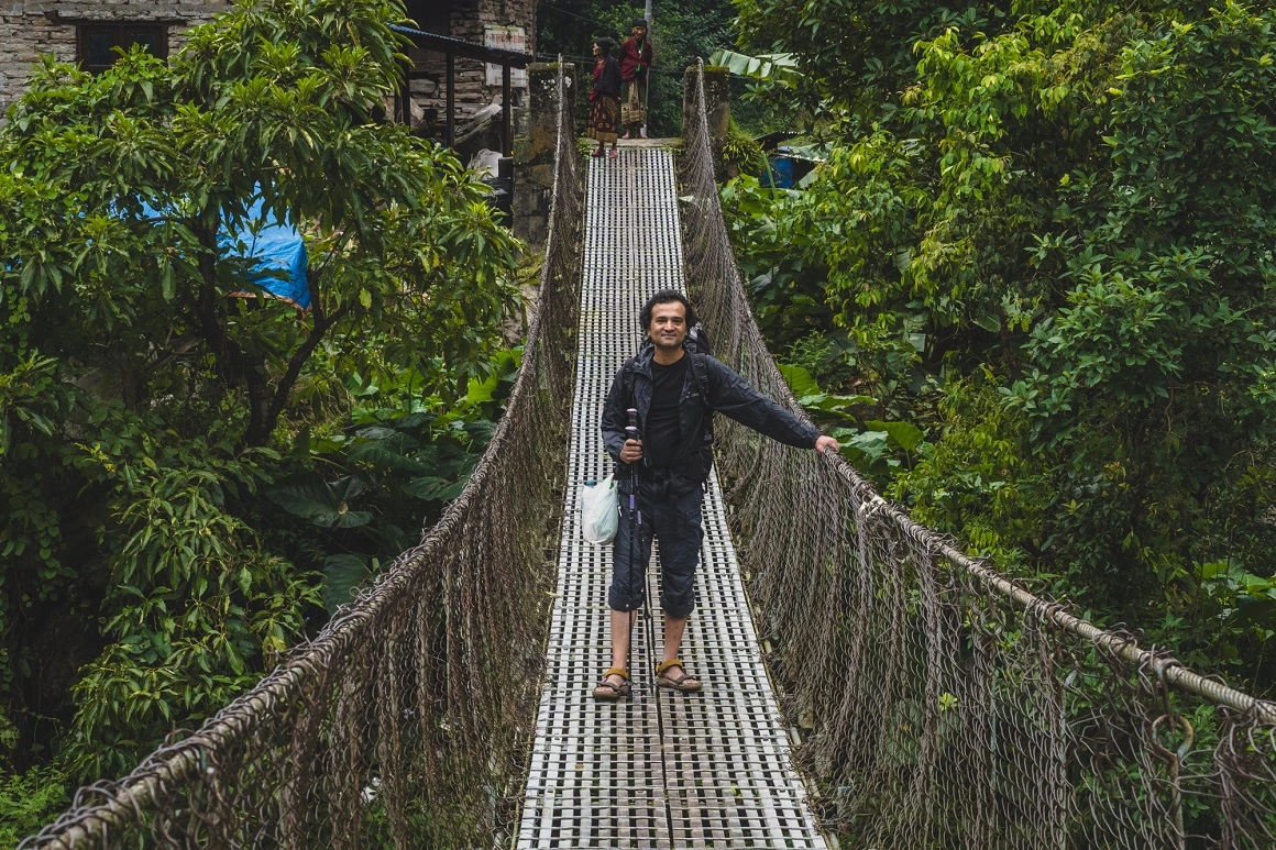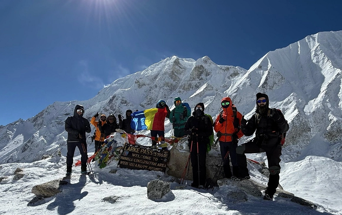 Ideea unei drumeții în Nepal a apărut acum doi ani de la Marius, prietenul meu de-o viață, și tovarășii lui, George și Ovidiu – toți trei lucrează în telecomunicații și au fost colegi de cămin și de muncă. În vara lui 2024 eram cu ei pe segmentul bucovinean al Via Transilvanica și Ovidiu ne spunea că are un cumnat în Kathmandu. Riken, cumnatul nepalez, lucrează în domeniul hotelier și are o trupă de gypsy jazz în care cântă la chitară, bas și contrabas. Iar Rahul, prieten cu Riken din copilărie, lucrează în IT, e fotograf și ghid montan – Rahul va conduce expediția. Din grup fac parte și Paul, fost coleg de muncă și el cu Marius, Andrei, arhitect, și Gabi, fotograf. Paul a mai fost în drumeții lungi, întinse pe mai multe zile, cu rucsacul în spate, iar Andrei și Gabi au și ei mai multe aventuri extreme în spate – acum câțiva ani au fost în Munții Pamir, supranumiți „Acoperișul Lumii”. George glumește că anul ăsta a alergat mai mult decât a condus: printre multe alte competiții, în vară a alergat un ultramaraton de 102 kilometri în munții Piatra Craiului, Bucegi și Leaota.