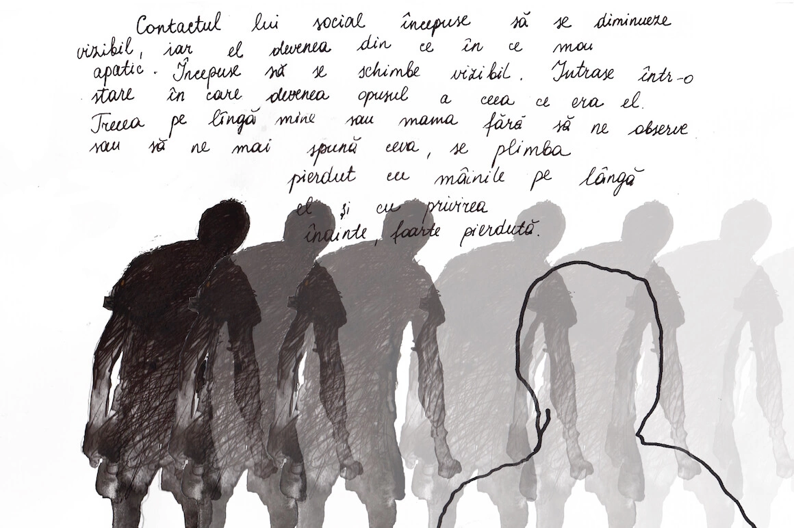 O vreme, însă, totul a părut în regulă. Andrei părea băiatul pe care îl știam, la fel de pus pe discuții și de deschis. Până la un moment dat, când a început să se schimbe. Interacționa mai rar, devenea din ce în ce mai apatic. Devenise opusul a ceea ce știam despre el. Trecea pe lângă mine sau mama fără să ne observe sau să mai spună ceva, se plimba cu mâinile lăsate pe lângă corp și cu privirea pierdută. Avea momente în care, la ore târzii, ieșea din casă trântind ușa, mergea pe hol până la ghena de gunoi, trântea și ușa de-acolo și apoi patrula de la lift până la noi la ușă. Făcea asta timp de două-trei ore. Se transformase și fizic. Avea niște cearcăne foarte mari, privirea injectată și părea dezorientat.