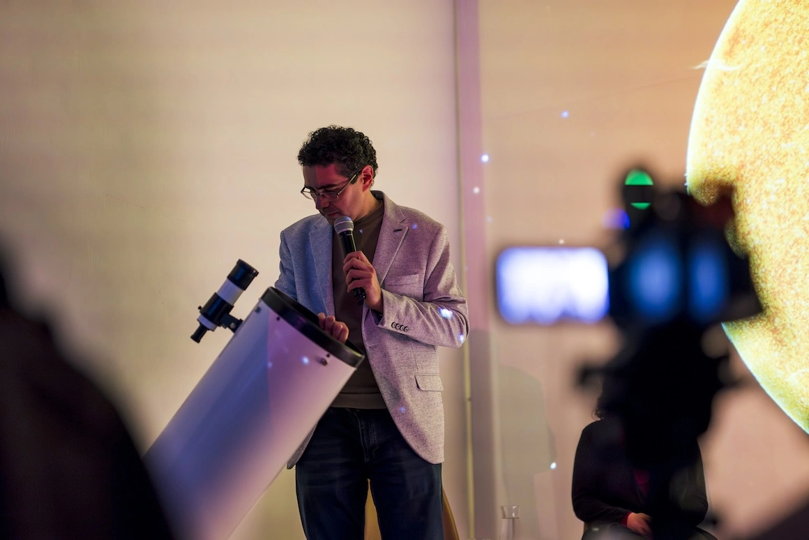🗓️ În zilele de 24 & 25 ianuarie 2026, Rezidența9 (I.L. Caragiale 32) a găzduit, în cadrul expoziției „Ce ascundem”, un weekend cosmic, dedicat astronomiei ca formă de cunoaștere a spațiului în care trăim, dar despre care știm atât de puțin. A fost deschis un dialog între știință, artă și jurnalism. Weekendul s-a construit în jurul a două experiențe complementare — o seară de observație astronomică și dialoguri și ateliere de astronomie pentru copii.
