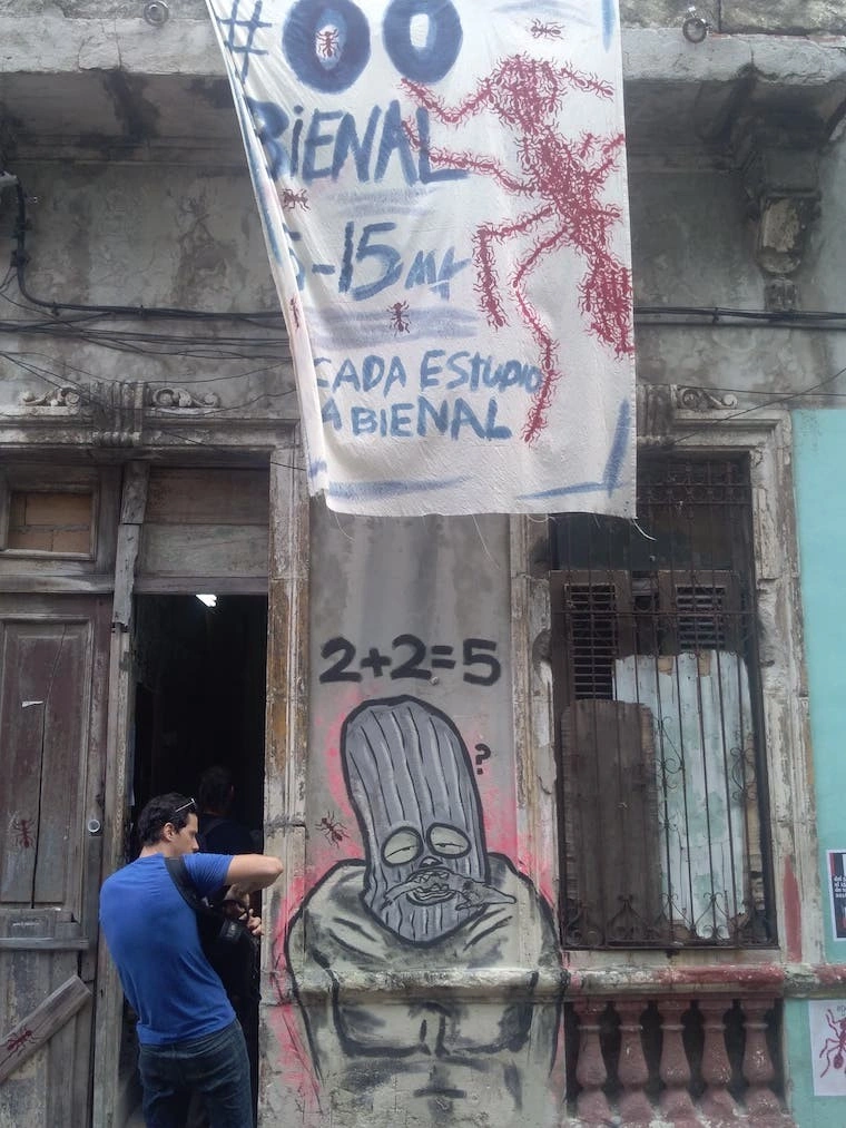 N-am înțeles cum de guvernul a permis desfășurarea bienalei. Aproape toți invitații străini au primit un telefon prin care au fost convocați la biroul de emigrări. Unii s-au prezentat, alții nu. Mini interogatoriul la care fusesem supus în aeroport nu fusese chiar întâmplător. O altă artistă cubaneză cunoscută, Coco Fusco, a fost oprită la vamă și trimisă înapoi în SUA. Lista participanților a fost publicată pe Facebook în ultima clipă. Un eveniment desfășurat într-o galerie dintr-o casă particulară a fost întrerupt de poliție. Din perspectiva unui străin, relația dintre organizatori și regim părea un fel de joacă de-a hoții și vardiștii.