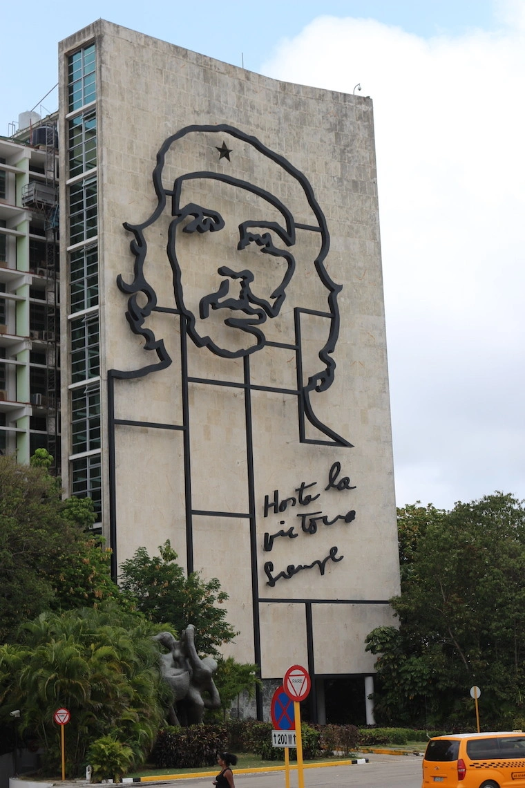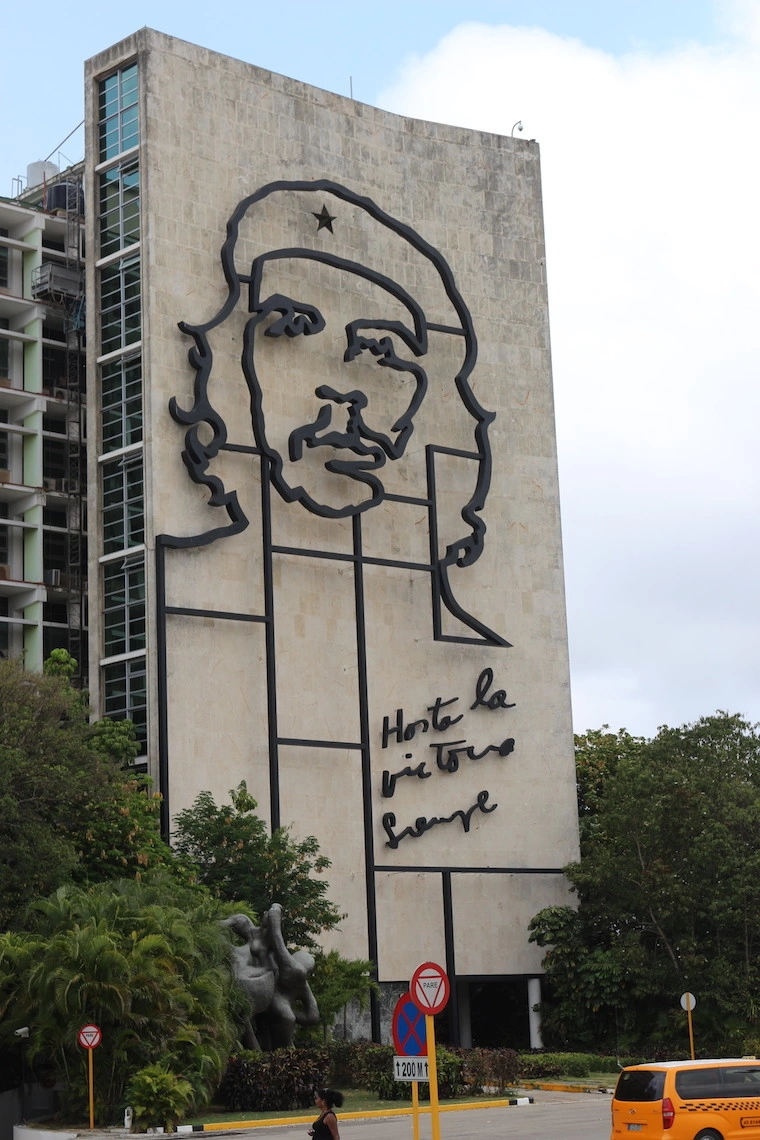 Într-una dintre zilele libere ale bienalei am vizitat celebra La Plaza de la Revolucion, acolo unde, printre altele, regimul îi interzisese Taniei Bruguera să prezinte Taitlin’s Whisper. E un loc lipsit de viață ce se animă doar în timpul manifestațiilor oficiale. După cum observă un arhitect, e una dintre acele piețe pe care le preferă regimurile despotice, fără un rol activ în viața de zi cu zi a orașului. În mijlocul ei stă erect monumentul lui Jose Marti, apostolul independenței cubaneze. Dacă e să te iei după numărul uriaș de busturi și instituții care-i poartă numele, Marti e vedeta spațiului public. Actuala constituție cubaneză a fost rescrisă în 1992 conform ideilor sale, alături de conceptele enunțate de Marx, Engels și Lenin. Cu toate acestea, l-am ignorat pe Marti și mi-am făcut un selfie al propriei măști, parte a unui proiect intitulat Hasta Victoria Para Selfie avîndu-l pe fundal pe Che Guevara, al cărui portret gigantic conturat din metal domină piața. Nu e singur, pe altă clădire se află figura lui Cienfuegos, confundat de mulți cu Fidel Castro, deși barba îl face să arate mai mult ca un Ayatollah. Camillo Cienfuegos a fost una dintre acele figuri istorice care aveau să dea un aspect sexy și romantic Revoluției cubaneze. A murit într-un accident de avion chiar în anul victoriei, iar unele voci spun că accidentul a fost comandat de Fidel, care se simțea amenințat de popularitatea lui Camillo.