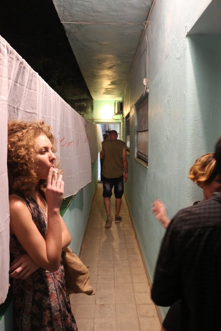 Camera în care ar fi trebuit să-mi fac spectacolul nu avea ușă. Cu excepția ușii de metal de la intrare, nu prea erau altele în restul apartamentului. Printre altele, intimitatea e esențială în acest show. M-am gândit că o să rezolv eu cumva, mai ales că fiecare reprezentație cu A Dog Day Afternoon a fost diferită. L-am prezentat de multe ori în București, o dată în Sibiu și o dată în Stuttgart și de fiecare dată am lucrat cu un alt performer. De data asta urma să lucrez cu Lala Misosniki, cu care mă știam de multă vreme din București, din vremurile de început la lorgean theatre, teatrul meu de apartament. Lala venise în Havana tot pentru bienală și prezenta un performance one to one în casa Taniei Bruguera.