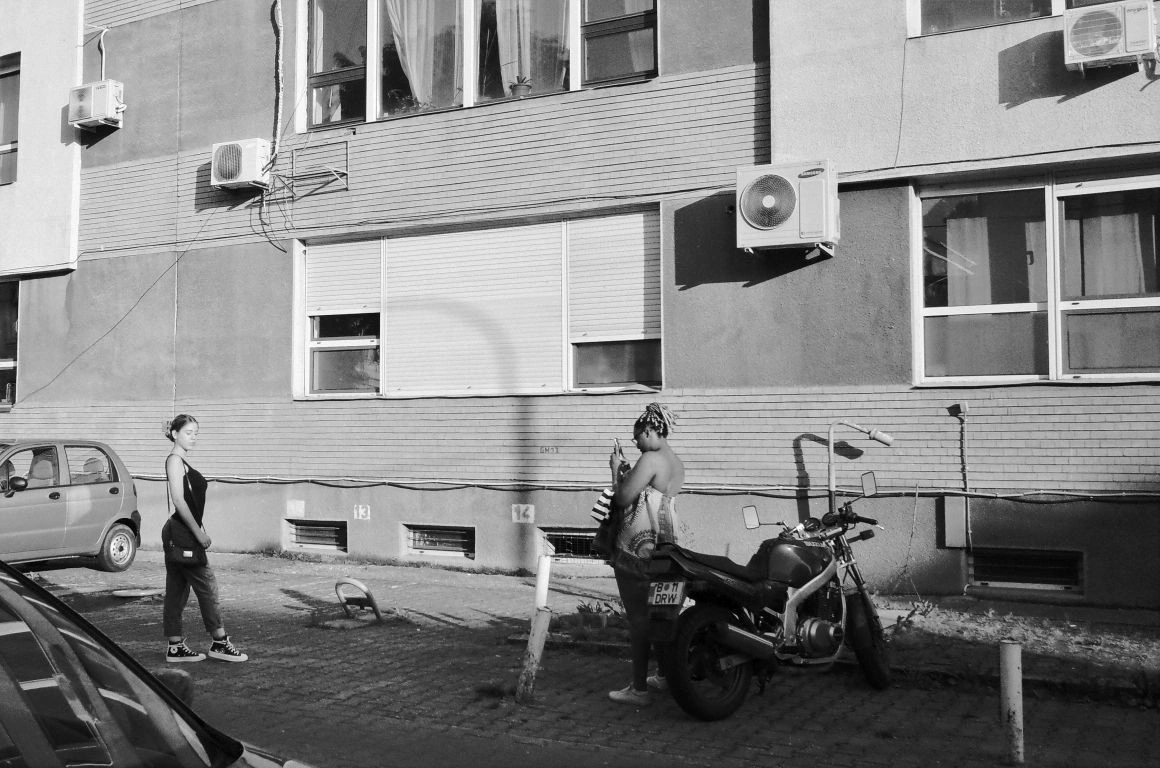 Clădiri bizare răsar ca buruienile atunci când nu cultivi nimic, boturile mașinilor, panouri electrice, saci de ciment, grămezi de gunoaie, țevi de gaze ne împung pe trotuarele strâmte, unde ne ferim unii de alții și ne dăm la o parte ca să ne facem loc. „De când sunt mic, n-am mers niciodată pe trotuarul ăla”, spune un băiat la 30+, arătând spre o porțiune de pe Sfinţilor, unde maşinile aproape că sunt lipite de perete.