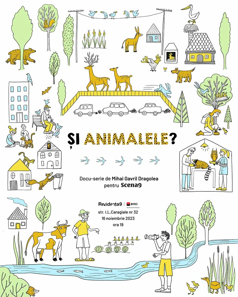 Seria „Și animalele?” va fi proiectată mâine, 16 noiembrie, de la ora 19, la Rezidența9 din București. După proiecție, sunteți invitați să-i cunoașteți și să intrați în dialog cu protagoniștii filmelor. Fiecare dintre cele cinci episoade va fi publicat în fiecare joi pe Scena9, începând de mâine.