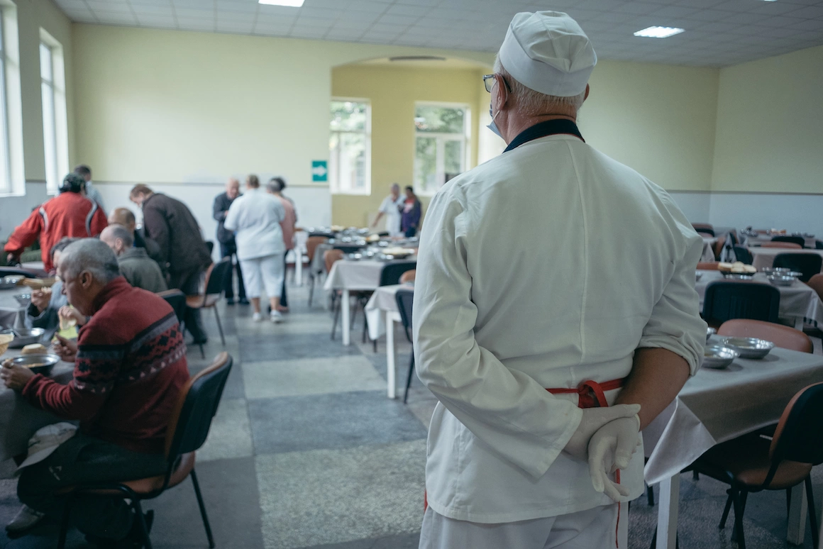 După ora prânzului, toată lumea se odihnește în saloanele cu câte șase-opt paturi. La parter stau bărbații, la etaj femeile. Infirmierul trece pe la fiecare pacient cu un cărucior plin cu plicuri semnate și scoate din ele tratamentul. Într-una dintre încăperi e agitație. Un bărbat cu chelie, care tocmai s-a cazat, împarte bomboane cu cocos vecinilor de cameră și își îndeasă hainele sub pernă. În fața lui, un alt bărbat, pe la 40 de ani, plânge silențios. Gândurile lui cu greu îi găsesc vocea, după cele două atacuri cerebrale pe care le-a avut. Comunică, în schimb, cu ochii albaștri și umezi, care te privesc lung și caută înțelegere. Acasă, încă îl mai așteaptă o fetiță de câțiva ani și soția, care vrea să divorțeze în curând.