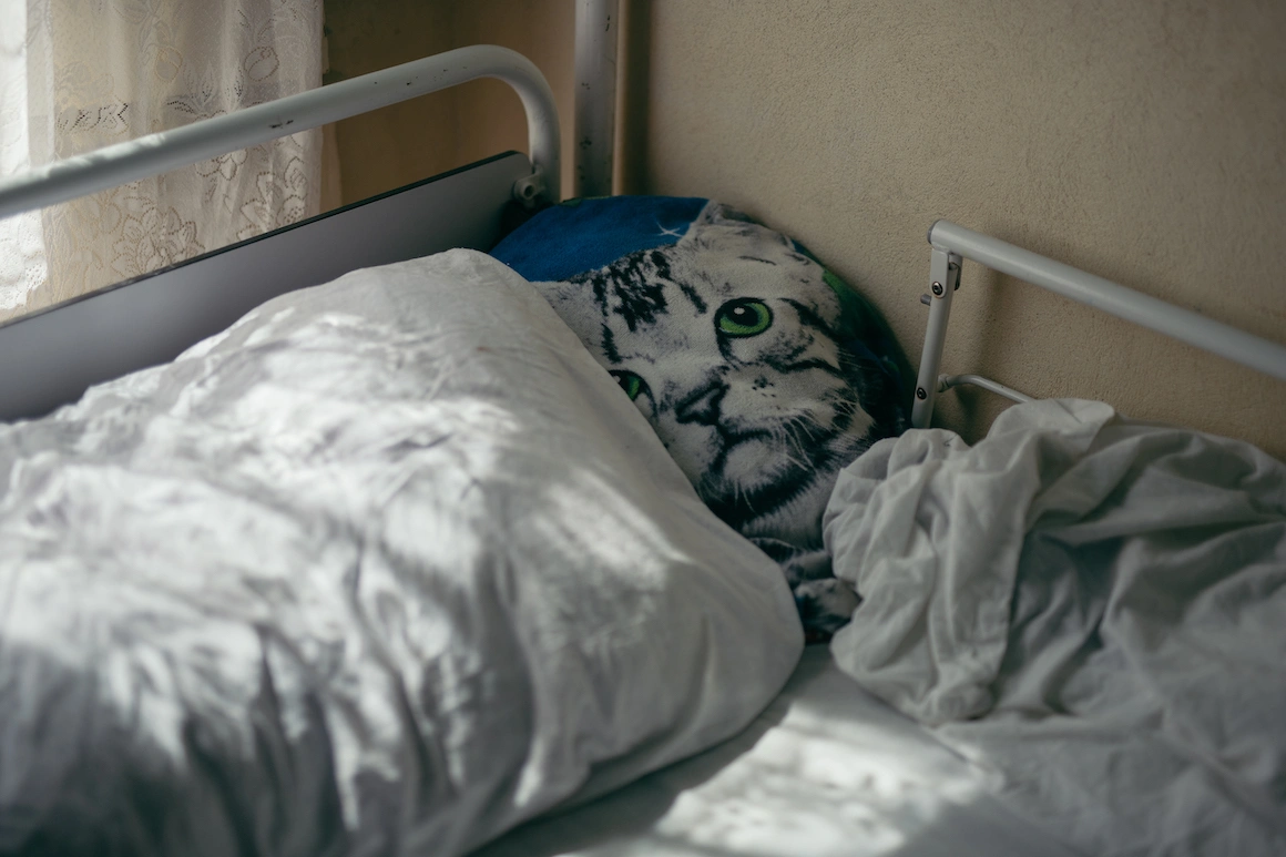 În salonul din dreapta, o bătrână citește o felicitare pe marginea patului. În fața ei stă I., o femeie de 35 de ani cu o formă de dizabilitate mintală care a blocat-o într-un corp de fetiță. Patul ei e cel mai colorat. O coloană de animale din pluș o protejează de coșmaruri noaptea. În prietenia lor, I. a găsit o mamă pe care n-a avut-o, iar bătrâna a redevenit bunică. Aici, colegii de cameră se potrivesc în funcție de diagnostic, dar și de nevoile emoționale. „Dacă avem un pacient cu manie, îl punem lângă un pacient cu depresie. Se temperează unul pe altul”, spune medicul Muțiu, care e și șefa acestei secții.