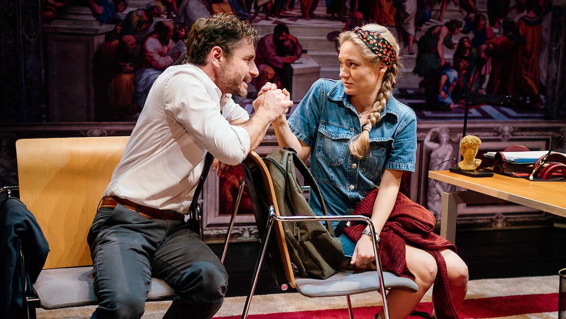 Premiera recentă cu acest text de la Teatrul Excelsior vine cu o nouă traducere de Andreea Vulpe și Cristi Juncu și asta clarifică din start lucrurile pentru că termenii și expresiile sunt luate din vocabularul ultimilor ani, de la „corectitudine politică” la „hărțuire sexuală”. Apoi viziunea regizorului Mădălin Hîncu recalibrează inteligent textul, pe muchie de cuțit, tăind în egală măsură din patologia studentei și din integritatea profesorului. După asta vin interpretările, Ioana Niculae în Carol, o tânără nesigură pe sine, dar doritoare de învățare și afirmare, și Marius Turdeanu (la debutul său pe scena Teatrului Excelsior ca angajat) în rolul lui John, un profesor universitar în pragul titularizării și al achiziției unei locuințe pe măsura noului său statut său social.
