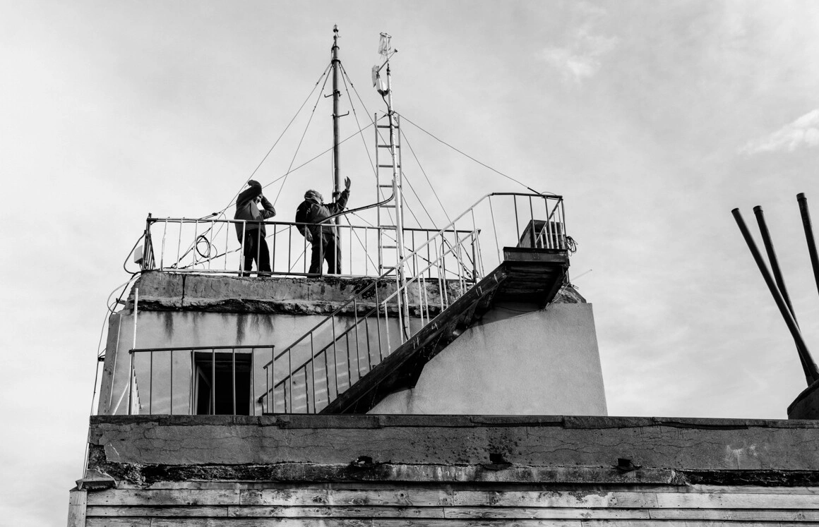 Radu îmi face un tur prin cotloanele întunecate ale stației și îmi povestește de un fost coleg care se plictisea de moarte când intra în tură și „striga de unul singur pe scări hai Steaua, hai, Dinamo.” Nici cel care lucrase înaintea lui, în anii ‘90, nu se împăcase bine cu condițiile de pe corabia din vârful munților, mai ales că-l și speriau colegii cu povești despre fantomele care bântuie stația. Munca de la Omu nu e pentru oricine. Acum mai bine de 20 de ani, când s-a angajat la stația meteo, mai întâi ca tehnician, cei de Centrul Meteorologic Regional i-au spus: „Neapărat să veniți cu testul psihologic făcut.”