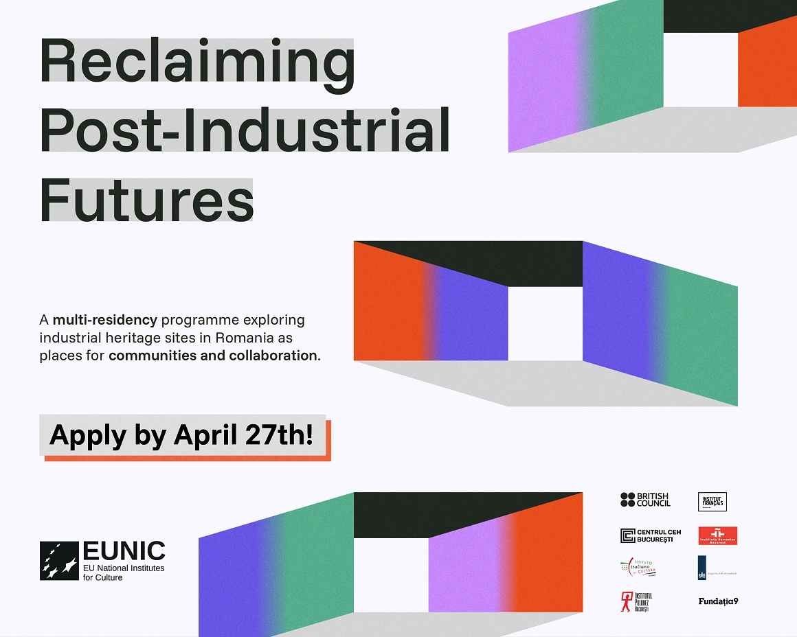 Artiști și artiste, practicieni și practiciene se pot înscrie la una dintre cele opt rezidențe în cadrul programului Reclaiming Post-Industrial Futures, care explorează situri uitate ale patrimoniului industrial din România, privindu-le ca spații potențiale de colaborare și regenerare comunitară.