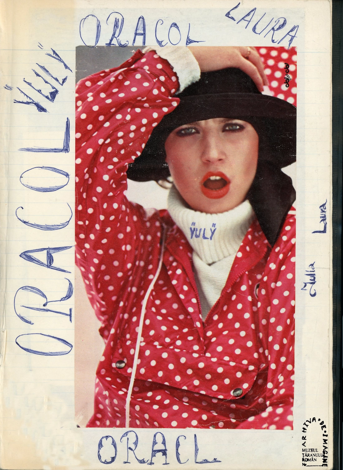 Într-unul dintre caiete, în dreptul întrebării „Ai fost la el/ea acasă?”, e lipită fotografia unui living luxos și extrem de spațios, de neimaginat pentru un copil care ținea un oracol într-un oraș românesc al anilor ‘80. De asemenea, erau acolo fotografii cu vedete sau mașini din străinătate, complet inaccesibile, un fel de icoane desacralizate. Prin apelul la valorile astea străine, copilul sau adolescentul își construia cu grijă o imagine. Oracolul era și o competiție în care trebuia să arunce resurse prețioase.