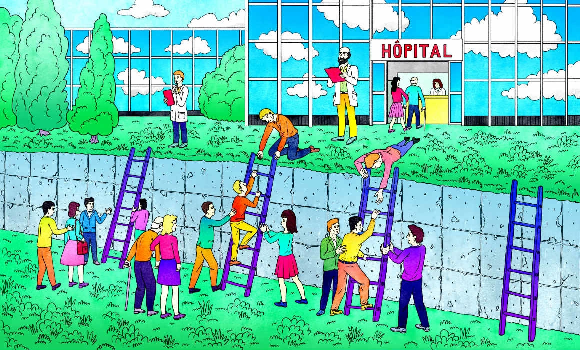 Știam și că investițiile în 2018 au scăzut față de 2017, că are loc un soi de dezinvestire a statului din sănătate pe fondul unui viraj neoliberal surprinzător într-un „stat social” precum Franța. Aflasem pe aceleași căi că gradul de nemulțumire al francezilor față de gestiunea relațiilor cu spitalul, înainte, în timpul și după spitalizare, crescuse de la 5% în 2015 la 24% în 2018 – dar era încă 75% pozitivă! Complementar, din aceleași surse, văzusem și că satisfacția față de calitatea îngrijirii medicale scăzuse de la 69 % în 2015 la 49 % în 2018 – și, fapt extrem de semnificativ, această nemulțumire atinsese cote de 90% în rândul directorilor de spitale și de 65% în rândul medicilor, adică incomparabil mai mari decât în rândul populației. Pe scurt, încrederea și mândria francezilor în sistemul lor de sănătate erau în plină prăbușire (de la 74 % în 2016 la 67 % în 2017). Și, desigur, vedeam aproape zilnic, tot la televizor, nemulțumirile populației față de aglomerările din spitalele de urgență și alte disfuncționalități.