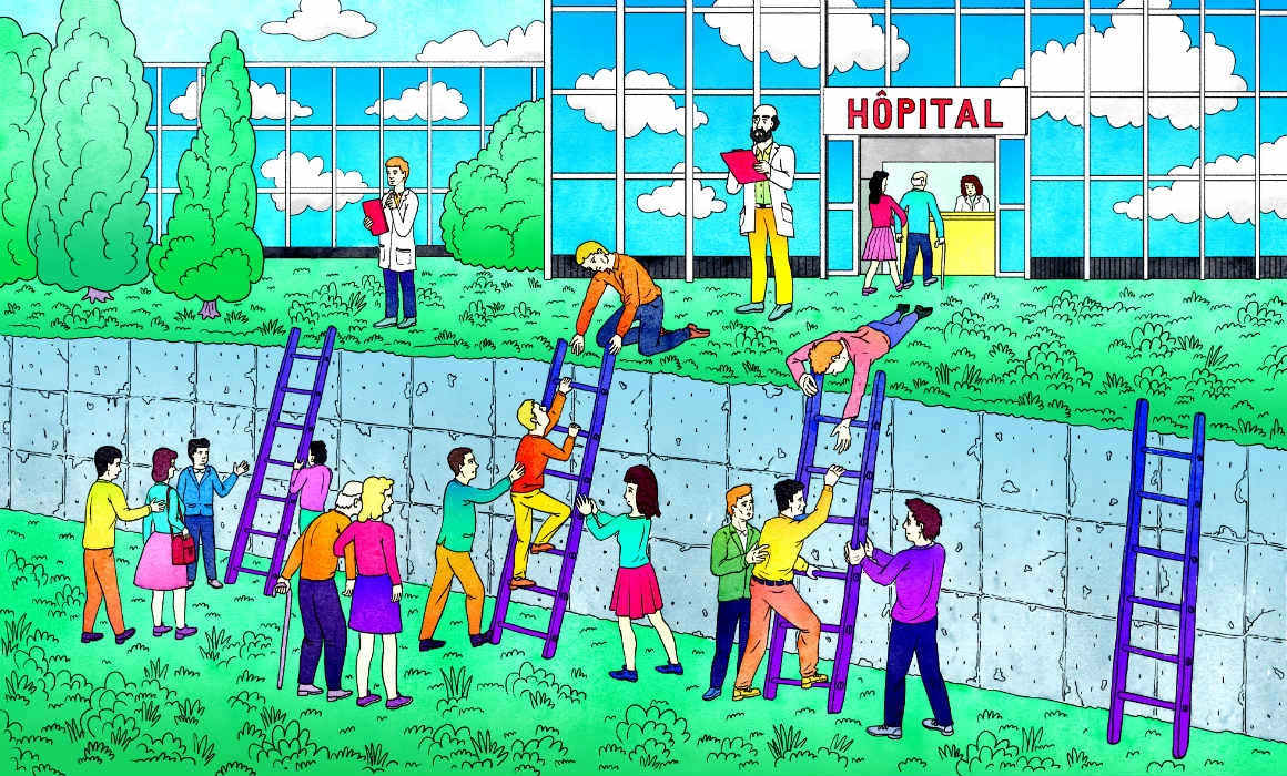 O asemenea situație constituie, evident, un element disfuncțional: pur și simplu nu ar trebui să existe! Trebuie să deschid însă o mică paranteză. Fără a vrea să fiu, Doamne ferește, cinic, dar pentru un român este util să încadreze ordinul de mărime al acestui „blocaj” pentru a se putea poziționa pe sine: or, este vorba despre aproximativ 7 din 10 francezi care au ajuns să stea la coadă la urgențe până la o oră, adică mai puțin decât în mare parte a țărilor europene... Din nou, o diferență dintre un sistem funcțional și unul nefuncțional: într-un sistem funcțional, este de neimaginat să se ajungă la cazuri de aglomerație și așteptare într-un spital de urgență. Într-un sistem nefuncțional, este greu de imaginat că poți să intri/stai într-un spital fără a aștepta indefinit. Or, în aceste condiții, tot ceea ce cerem noi nu este dispariția aglomerărilor, ci egalitatea cozii: să se păstreze rândul! Cam ca altădată la lapte sau butelii.