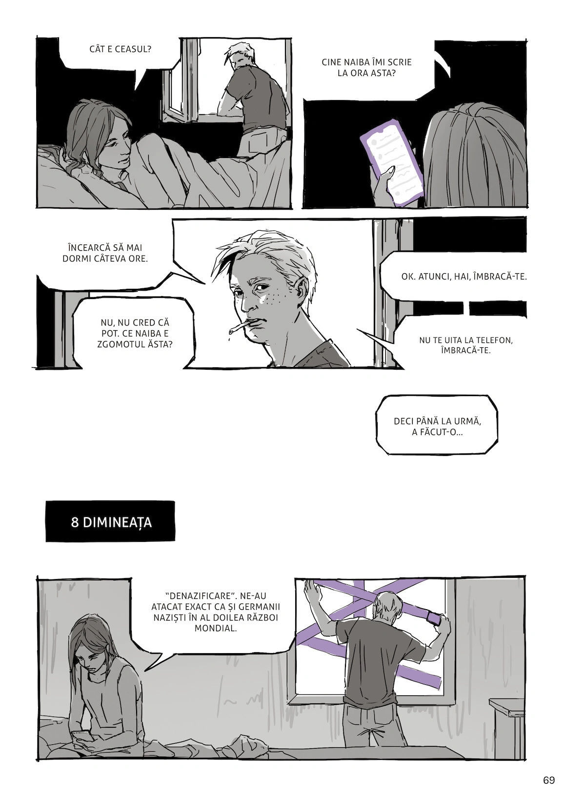 Povestirea relatează evenimentele dramatice așa cum le trăiește tânărul cuplu ucrainian-belorus, care se confruntă și depășește provocările confuziei psihologice și ale distrugerii rețelelor sociale și de comunicare, în drumul lor de a părăsi capitala Ucrainei pe măsură ce forțele ruse avansau dinspre nord. Deși personajele principale nu sunt reale, profilul lor social și experiențele portretizate se bazează pe interviuri și materiale despre începuturile războiului.