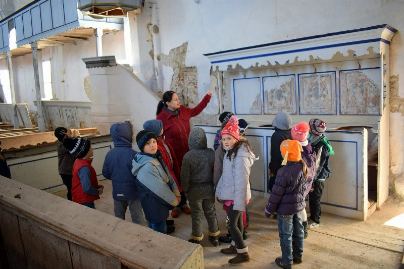 Și e liniște. Singurul zgomot care se mai aude în lăcaș, de când Alina și Radu au renunțat să mai bată clopotele (pentru că sunetul puternic poate adânci fisurile), vine de la grupurile de copii care ajung la ateliere în curtea bisericii sau la casa parohială.