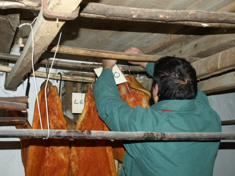 Lași în urmă turnul clopotniței și intri în turnul slăninilor. Alina și Radu au reușit să reactiveze de aproape doi ani un obicei care a rezistat până în anii 80 în Felmer. Sașii au amenajat câteva grinzi din cele două turnuri de apărare ale bisericii, unde lăsau peste iarnă, până primăvara târziu, bucățile de afumătură lungă de-un metru, de la porcul sacrificat de Crăciun.