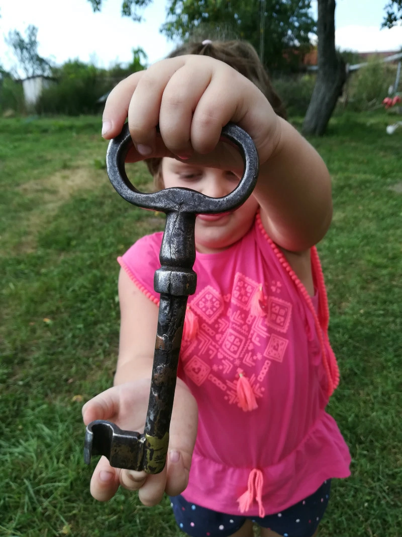 Alina aduce din casă un lanț de chei mari, cât palma și ne poftește în biserică. Cheia cea mai mare deschide ușa masivă din lemn înnegrit de vreme, așezată pe latura sudică a bisericii. Mecanismul vechi scrâșnește metalic, ușa scârțâie și se deschide.