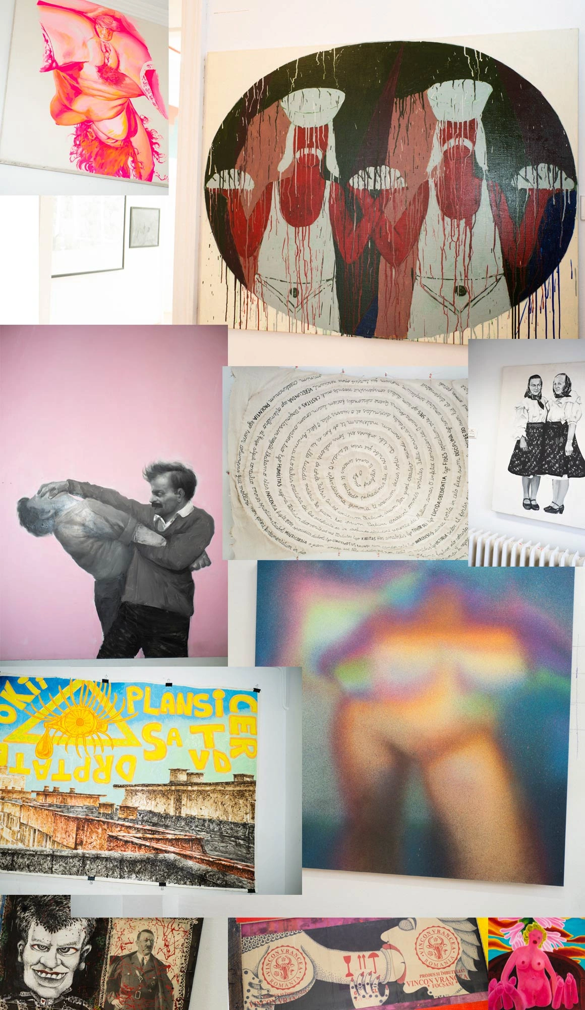 Am ajuns la „Expoziţia Dan Popescu” într-o după-amiază de februarie, pe un ger de crăpau pietrele în măruntaiele palatului neîncălzit din inima Bucureştiului. Am împins uşa grea, nimeni la intrare, doar o voce joasă auzindu-se dintr-o sală. Pe moment, nu am realizat dacă era o înregistrare în buclă în limba engleză sau The curator is present, dar misterul nu a întârziat să se risipească. Dan Popescu în persoană explica unui grup de nemţi originalitatea colajelor filmice ale lui Bârlădeanu şi refăcea contextul expunerii iniţiale a unora dintre lucrările de acum două decenii ale lui Gorzo, Gili Mocanu sau Suzana Dan, menite să conteste existenţa vreunei graniţe clare între erotism şi pornografie. Doar una dintre numeroasele provocări ale artiştilor tranziţiei aduşi laolaltă de galeristul de la H’art, într-o expoziţie cu un concept la prima vedere nedumeritor de paranoic: ce tupeu şi pe galeristul ăsta să colonizeze cu propriul nume castelul Lahovary (adică palatul construit de tatăl Marthei Bibescu, sediu al Cambridge School până în 2019), Calea Dorobanţi şi munca artiştilor pe care i-a reprezentat în ultimul sfert de veac! În realitate, însă, lucrurile s-ar putea să fie exact pe dos şi să asistăm la un caz de posesiune, aşa cum veţi vedea imediat.