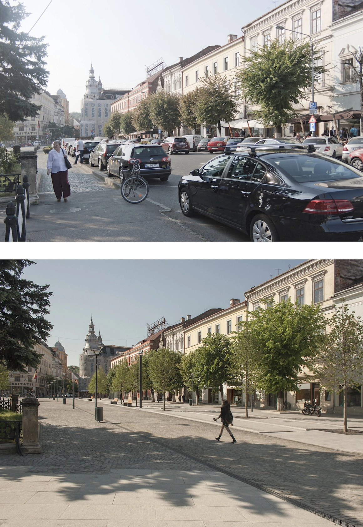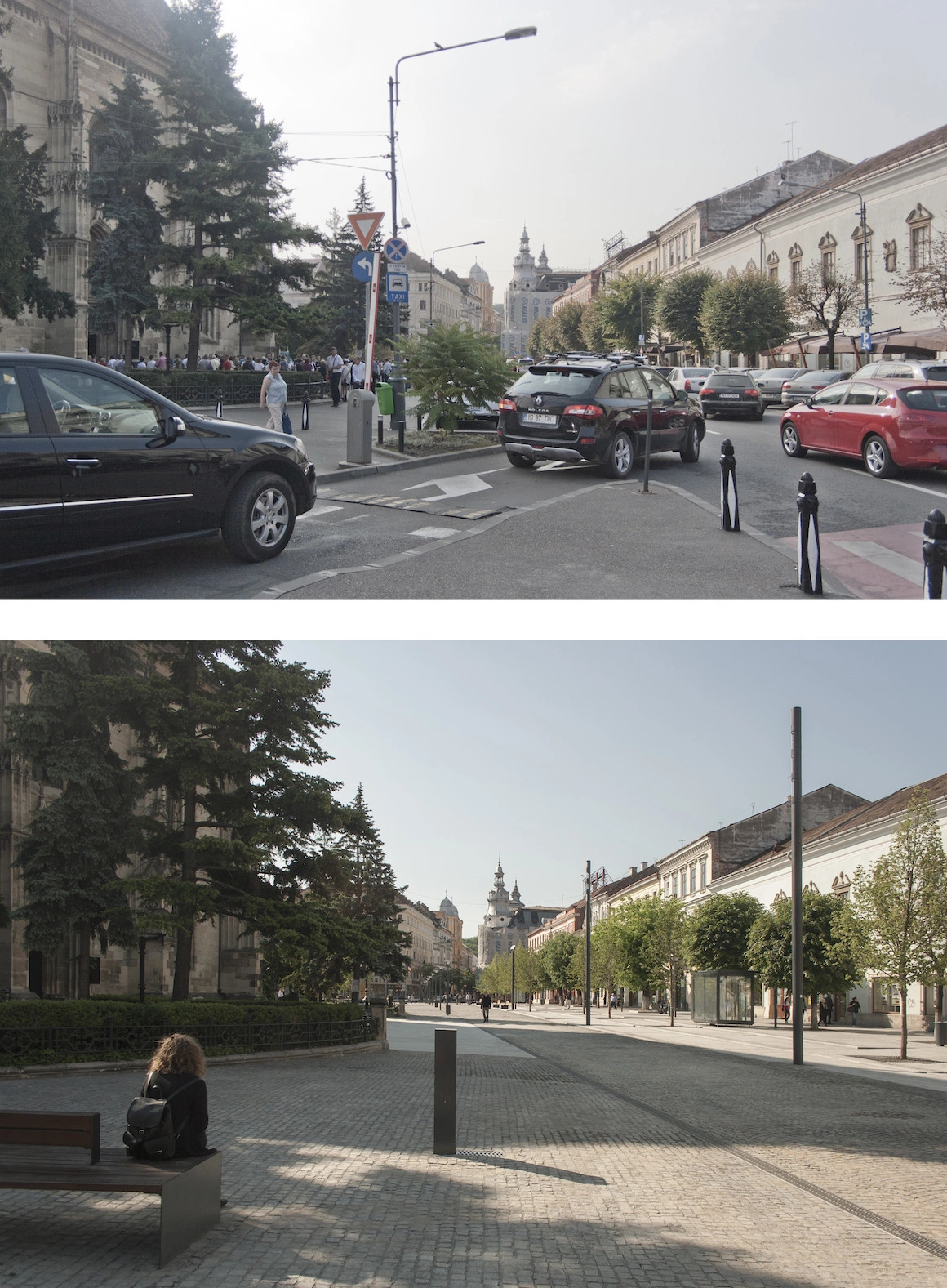 Clujul n-a avut niciun metru liniar de spațiu pietonal, spre deosebire de alte orașe cu centru istoric din socialism, care încă din anii ‘50-’60-’70 au primit câte o stradă, o zonă pietonală sau o piață. Noi am deschis tema asta la Cluj în anii 2000. Spațiul public nu era nici măcar o noțiune pentru cei mai mulți dintre noi. Prin 2005-2006, după ani de prezentări, discuții publice, articole în presă, s-a făcut prima străduță pietonală. După aceea planul a mers. Trebuie multă răbdare: de la o idee de proiect până la realizarea ei trec minim cinci ani. De asta nu-i niciodată prea devreme să discuți despre temele astea. Acum se implementează rând pe rând măsuri de reamenajare de spații publice, pietonale sau nu, cuprinse într-un plan de trafic făcut în 2005.