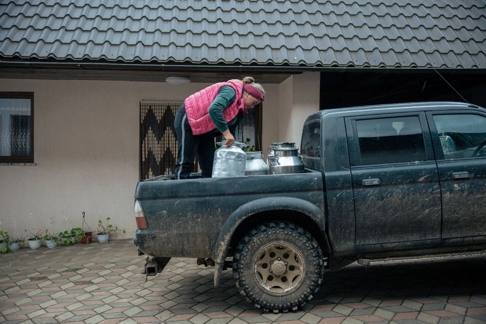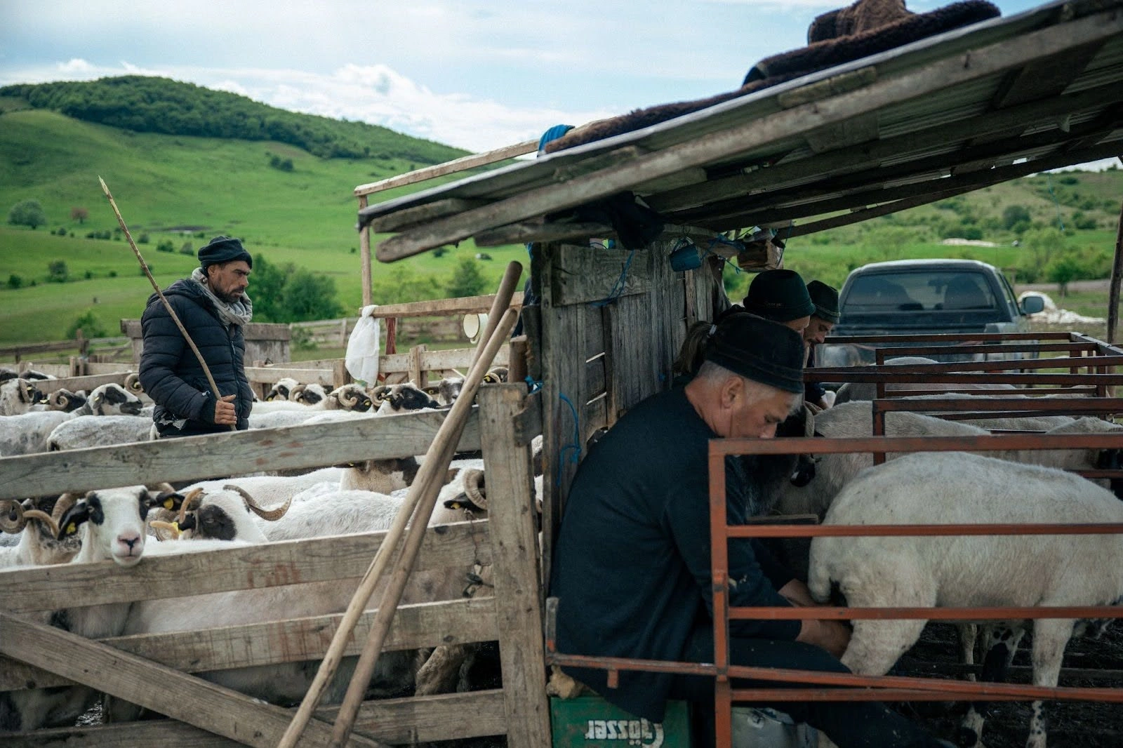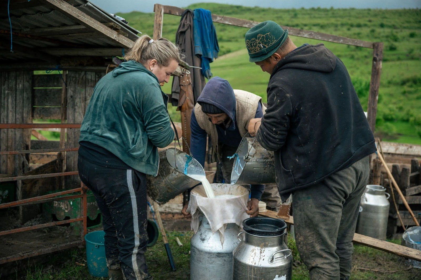 Durează cam 2-3 ore să mulgă 600 de oi, iar la final, bidoanele cu lapte proaspăt sunt urcate în remorca tractorului și duse la locuința familiei. De acolo urmează să fie vândute sau transformate în brânză. Procesul acesta se repetă pe tot parcursul verii, dimineața și seara – programul familiei e dictat de turmă și de nevoile animalelor.