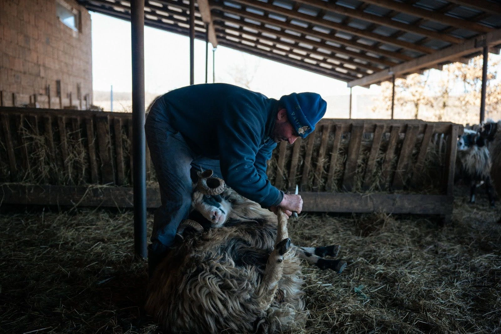 În februarie, turma familiei este împărțită – o parte din oi și mieii se află la ferma din sat, în timp ce restul de oi, cele care nu au fătat încă, sunt pe pășunea comunală. La fermă ciobanii sunt ocupați cu tăierea copitelor la berbeci. Copitele ovinelor se taie regulat, pentru a evita creșterea excesivă, care poate duce la deformări, probleme de mers și infecții. Procesul nu e dureros pentru animale.