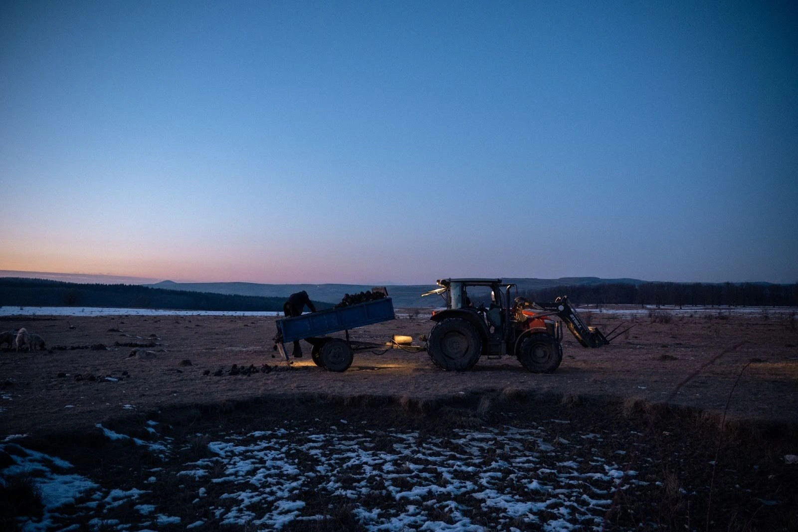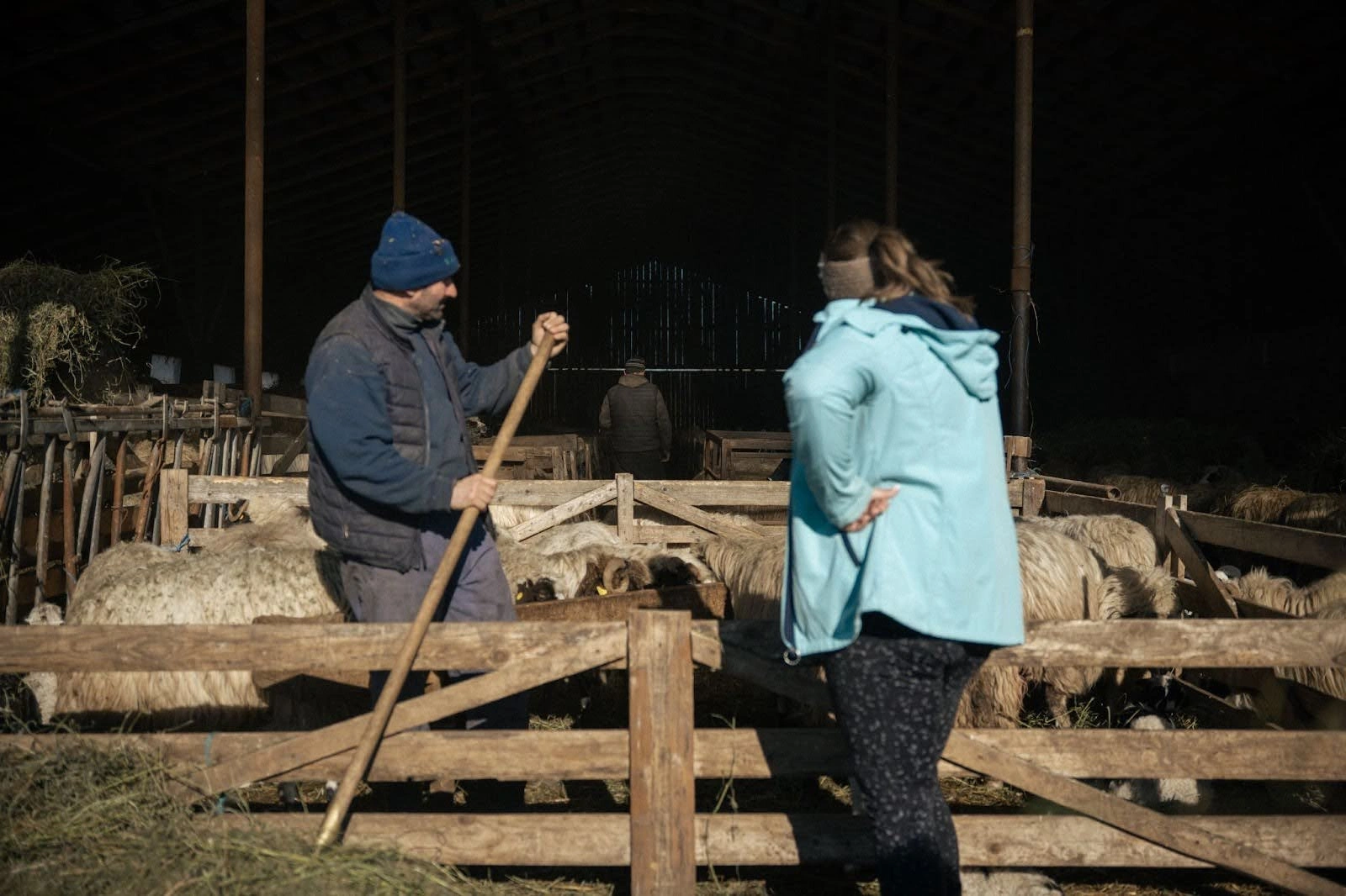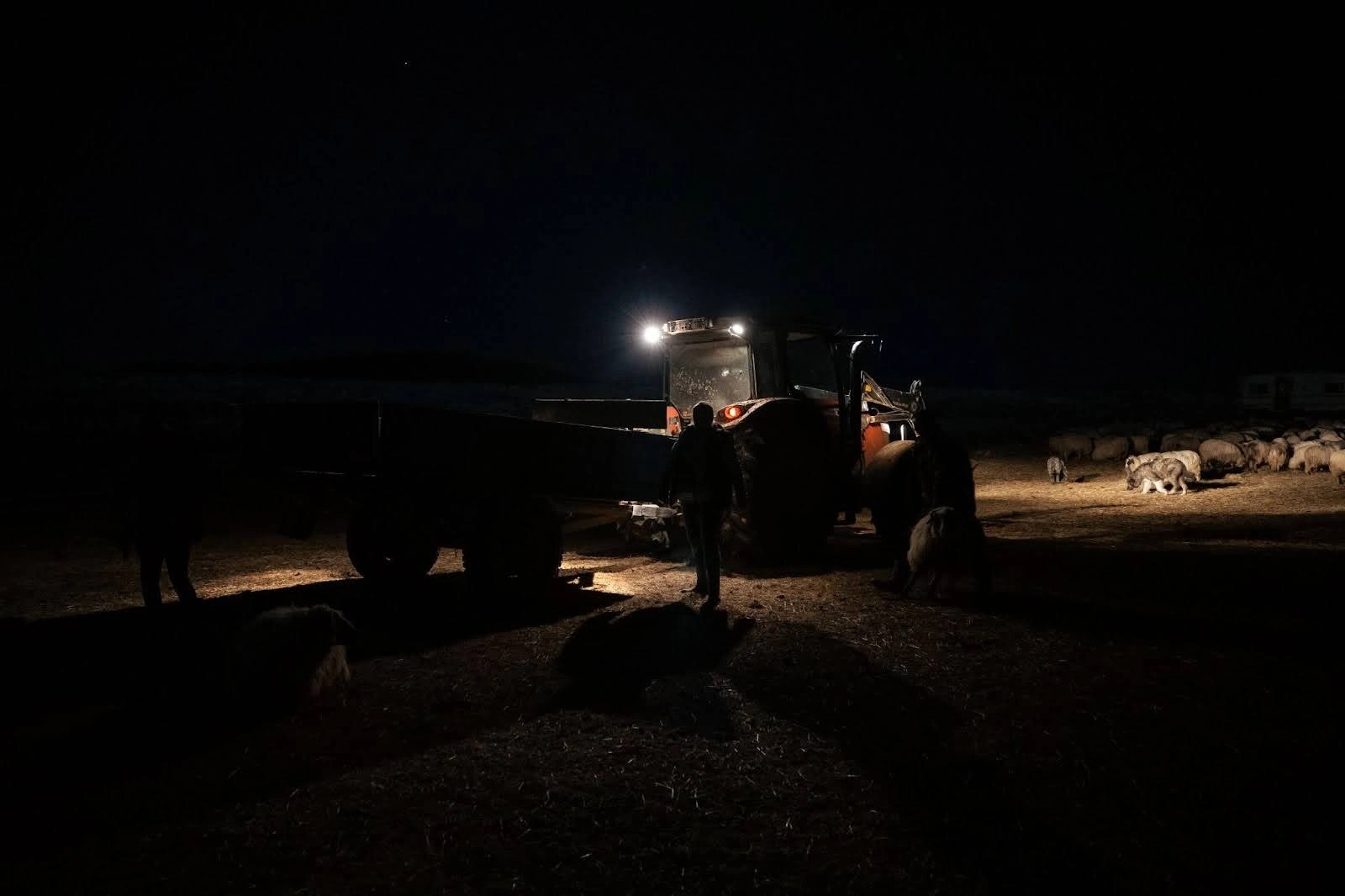 Înapoi la ferma din sat, e timpul mesei pentru oi. Oana ajută ciobanii să împartă fânul în toate țarcurile. Desfac rapid baloții cu furcile și cară în iesle fânul, care împrăștie în aer un nor de praf fin. Imediat ce termină, pornim din nou spre pășunea comunală, de data asta cu tractorul și remorca încărcate de sfeclă de zahăr, care va hrăni turma de acolo timp de câteva zile. Ni se alătură și ciobanul Mihai, care o ajută pe ciobăniță. Pe pășune, se lasă întunericul și se face tot mai frig, în timp ce cei doi împrăștie sfecla lângă țarcul turmei.