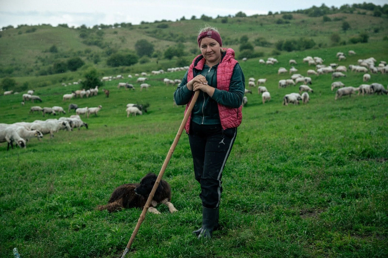 Odată ajunse la stână, Oana se dă jos din tractor, își ia toiagul decorat cu numele ei și o ia la pas pe dealurile din jur. Înconjurată de căței de stână, mari și mici, adună oile împrăștiate pe pășune și le mână spre strunga așezată mai în vale. Odată ajunse la strungă, adică îngrăditura unde se mulg oile, Oana, tatăl ei și cei doi ciobani se așează la muls, în timp ce mama ei stă în spatele boxei și împinge oile în strungă.