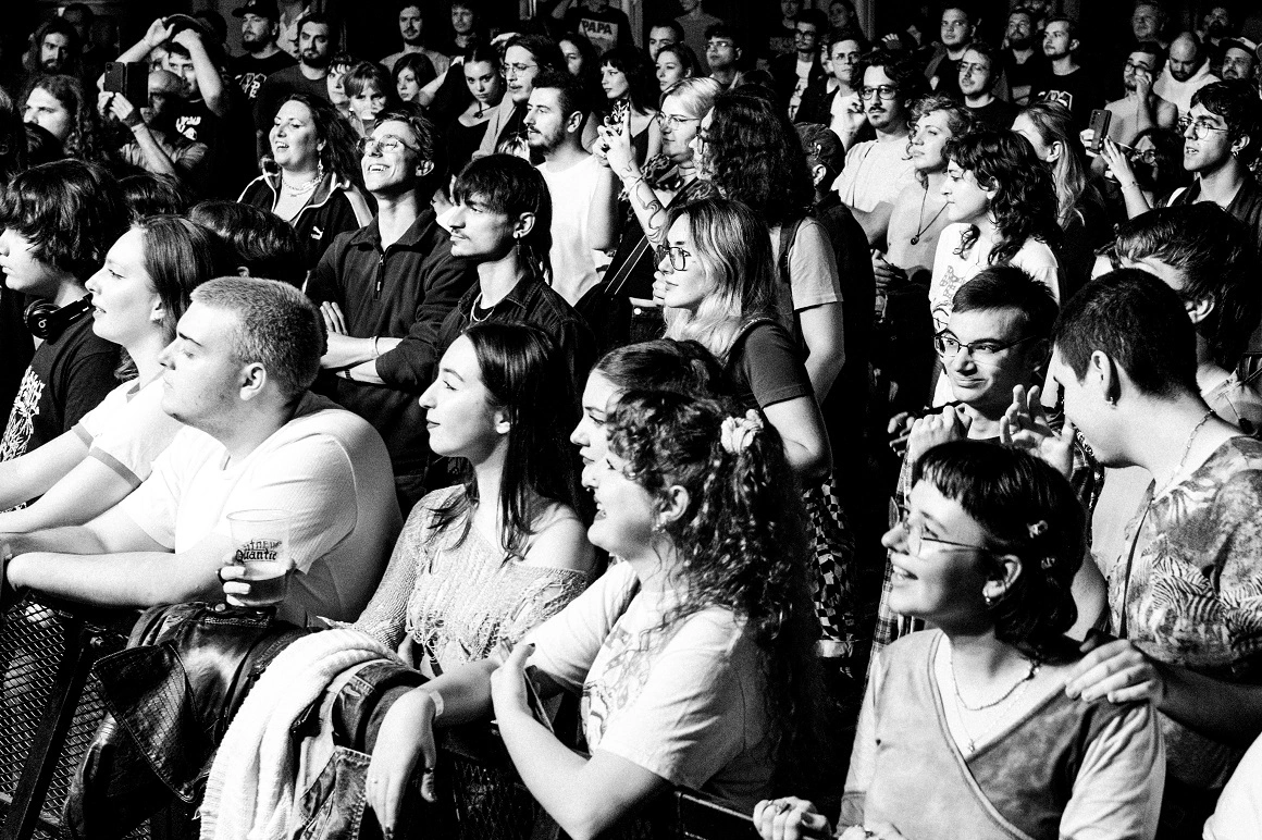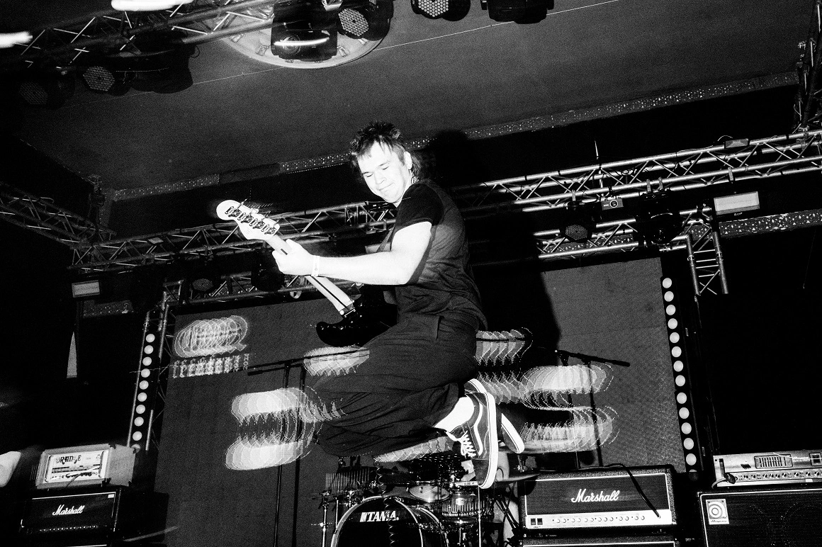 Daniel pune jos o sacoșă cu beri și desface husa. „Ghiciți ce am aicea”, spune, și scoate o chitară care pare că a văzut și zile mai bune, cu un mâner de sacoșă de rafie IKEA în loc de curea. „E foarte punk chitara asta”, zice Marat. „E posibil să fie o Hora sau un Reghin, dar nu scrie nimic pe ea. O să fie chitara comunală. Sau poate o distrugem într-un concert sau într-un clip, îi dăm foc sau o spargem, să fie așa spectaculos”, se gândește Daniel. Îmi spune că nu prea îi place să abuzeze de instrumente, dar, dacă e rost de spectacol și și-au trăit deja viața, o mai face. Luăm câte o bere din sacoșă și coborâm în mica sală de repetiții din incinta fostei fabrici de textile APACA. Cinstea e pentru că Daniel are job nou, la aceeași companie, dar ceva mai bine plătit.