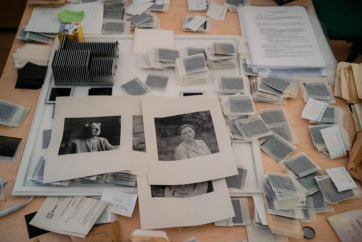 În laboratorul media al Arhivei Minerva, sunt patru mese unite pe care stau răsfirate cutii, negative sortate în plicuri, un proiector, un lightbox și o parte din arhiva revistelor Dolgozó Nő (Femeia Muncitoare, 1945-1989). Printre altele, zăresc cartea filosofului Jean-Luc Nancy, L’Autre Portrait (Celălalt portret, 2014). Întorc cartea și citesc: