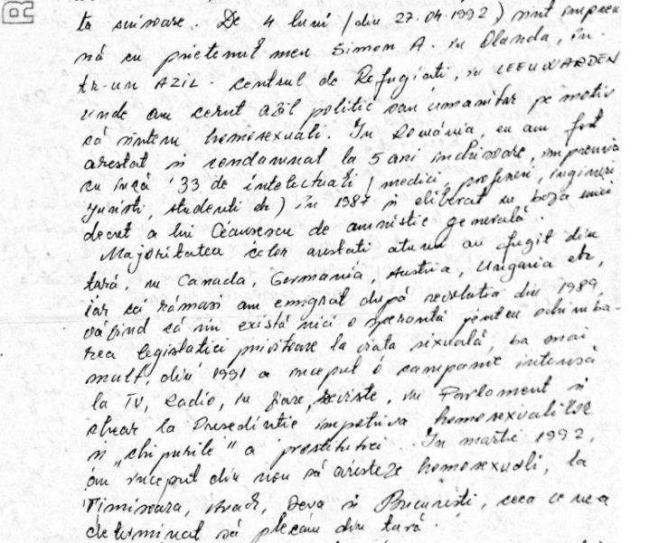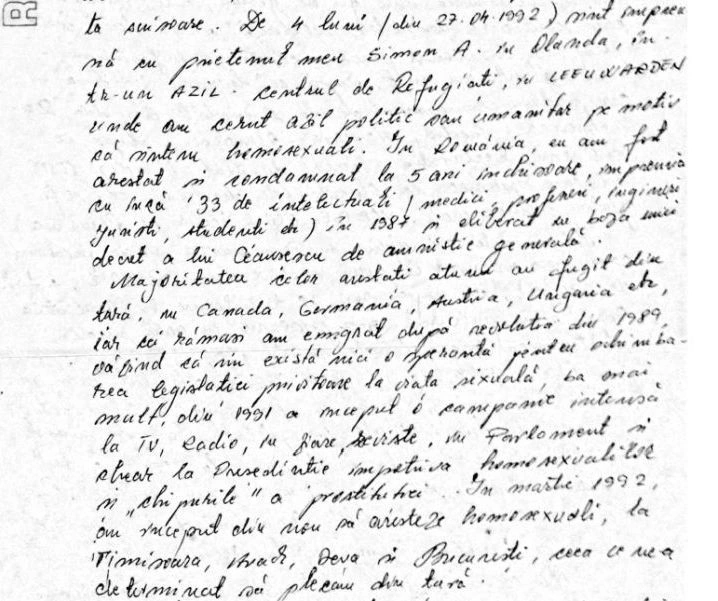 Fragmentul de mai sus face parte dintr-o scrisoare pe care-a primit-o în iulie 1992 activistul Adrian Newell Păun, acum în vârstă de 59 de ani. Pe-atunci, Păun era în San Francisco, de unde milita pentru drepturile persoanelor gay din România. Cu mai bine de zece ani înainte, în 1980, fusese „dat afară din țară” pentru adeziunea lui la Sindicatul Liber al Oamenilor Muncii din România (SLOMR). Un sindicat alternativ celui controlat de Stat, înființat cu scopul de a apăra interesele salariaților, nu pe cele ale Partidului și cadrelor. Exilarea n-a avut legătură cu homosexualitatea lui, deși făcuse „o mică imprudență” în ’77, într-o toaletă publică de la Palatul Telefoanelor, unde-a încercat să agațe un milițian de la Moravuri.