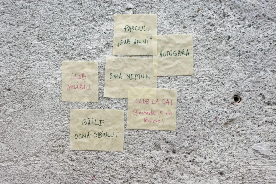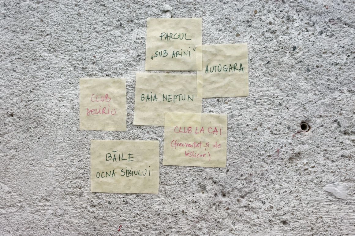 Unele scrisori vorbeau despre locurile de întâlnire a persoanelor gay din România - care, cel puțin în București, păstrează un aer ilicit și precar până la jumătatea deceniului, când apare primul clubul gay, „Sherlock Holmes”, pe bulevardul Kogălniceanu. Expoziția de la ODD include o mică hartă cu astfel de rendezvous-uri, pe care vizitatorii o pot completa.