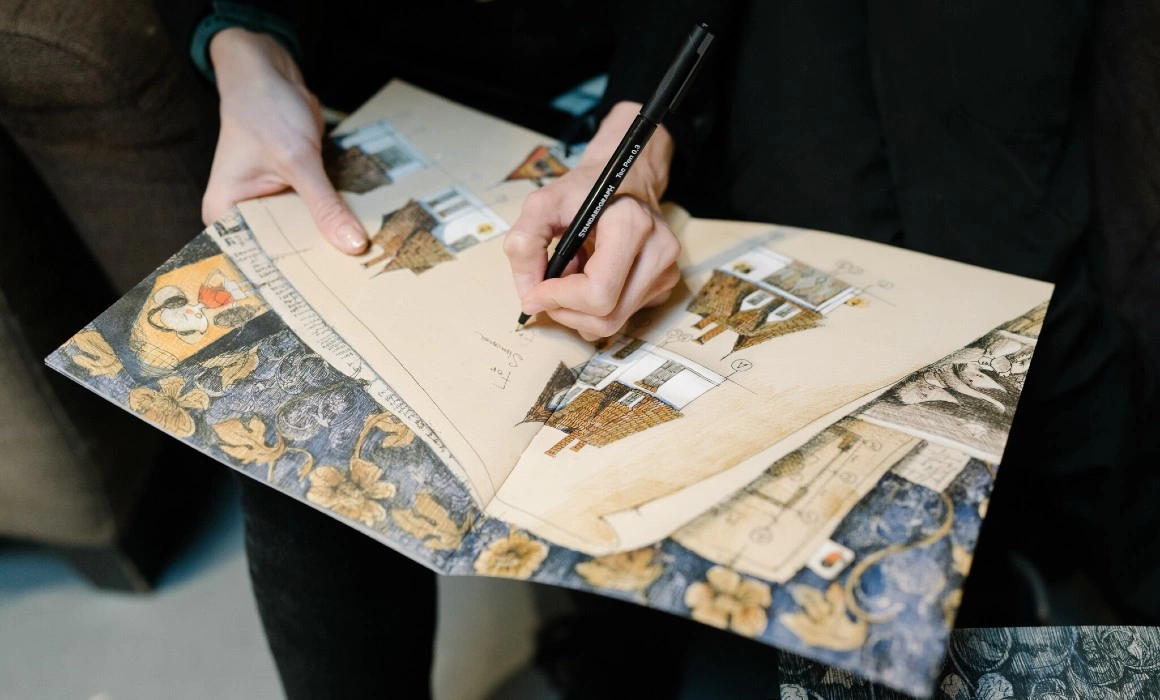 Lansarea poveștii Olgăi s-a făcut cu sala plină, într-o zi friguroasă pe dinafară și emoționantă pe dinăuntru. Amfiteatrul Seneca Anticafe a primit haine noi, recreate după ilustrațiile delicate ale artistei și continuate de copiii, în mare parte ucraineni, prezenți la lansare. În timp ce oamenii mari au ales cuvinte cu grijă, pentru că în realitate încă nu știm cum să-i vorbim unei persoane care fuge de război, copiii au pus cu dezinvoltură în desen familii de șoareci, iepuri, arici, întocmai ca în desenele artistei.