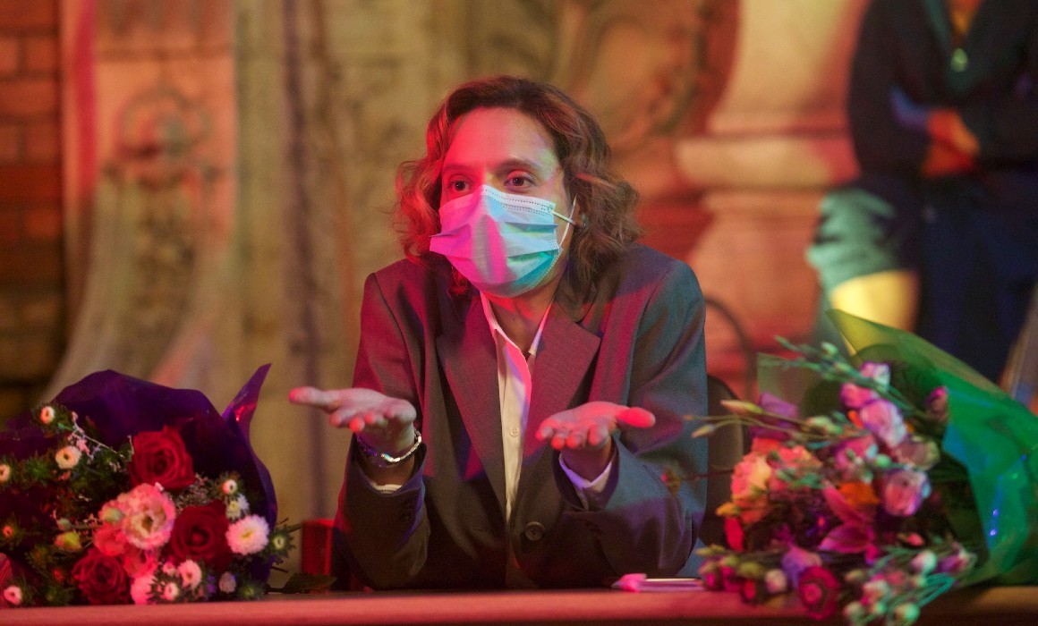 Cum poți să acorzi o atenție deosebită formei și totuși să nu treci drept manierist? Pericolul e real și cred că l-a preocupat și pe Jude. Poate de-aici și voluptatea de-a înțesa filmul cu tot soiul de giumbușlucării – vorba criticului Veronica Lazăr, ca un antidot flamboaiant la celofanul ceva mai spartan în care venea ambalat Îmi este indiferent dacă în istorie vom intra ca barbari (2018), celălalt triumf pe terenul filmului politic înregistrat de Jude. A impune o formă înseamnă a te expune automat unor sprâncene ridicate, iar cineastul nostru pare că dorește acum să-i păcălească pe acești justițiari pentru care rigoarea e de rău augur. De aici și aluziile nenumărate care jalonează filmul, afumând formalismul fără a ne face să-l uităm. E nevoie de ochi și urechi ultra-perspicace pentru a le prinde pe toate, fiindcă Jude are această calitate de-a împărți punctele câștigătoare și loviturile mortale cu nemiluita, de ambele părți ale baricadei, fără să-i pese de admiratori sau tabere adverse. Tocmai de-aceea putem zări pe un perete, în secvența porno care deschide filmul, un poster al filmului Adinei Pintilie Touch Me Not, cartea lui Liiceanu Isus al meu este filmată cu insistență în vitrina unei librării, iar vorbele aruncate de Andi Vasluianu – în rolul unui pilot de avion numit Otopeanu –, ceva de tip „botnița lui Arafat, acest om care injectează frica în omul recent”, închid în ele o lume întreagă. Și că veni vorba, n-ar fi exagerat de văzut în acest film o continuare țicnită a acelei povești prețioase care era Touch Me Not, făcută odată ce lucrurile de-acolo au luat-o mult pe arătură. E genul de inserție greu decelabilă prin care Jude arată că e cu un picior adânc înfipt în reflecția asupra propriului film: this is not only the meat, but the potatoes, vorba lui Don DeLillo.
