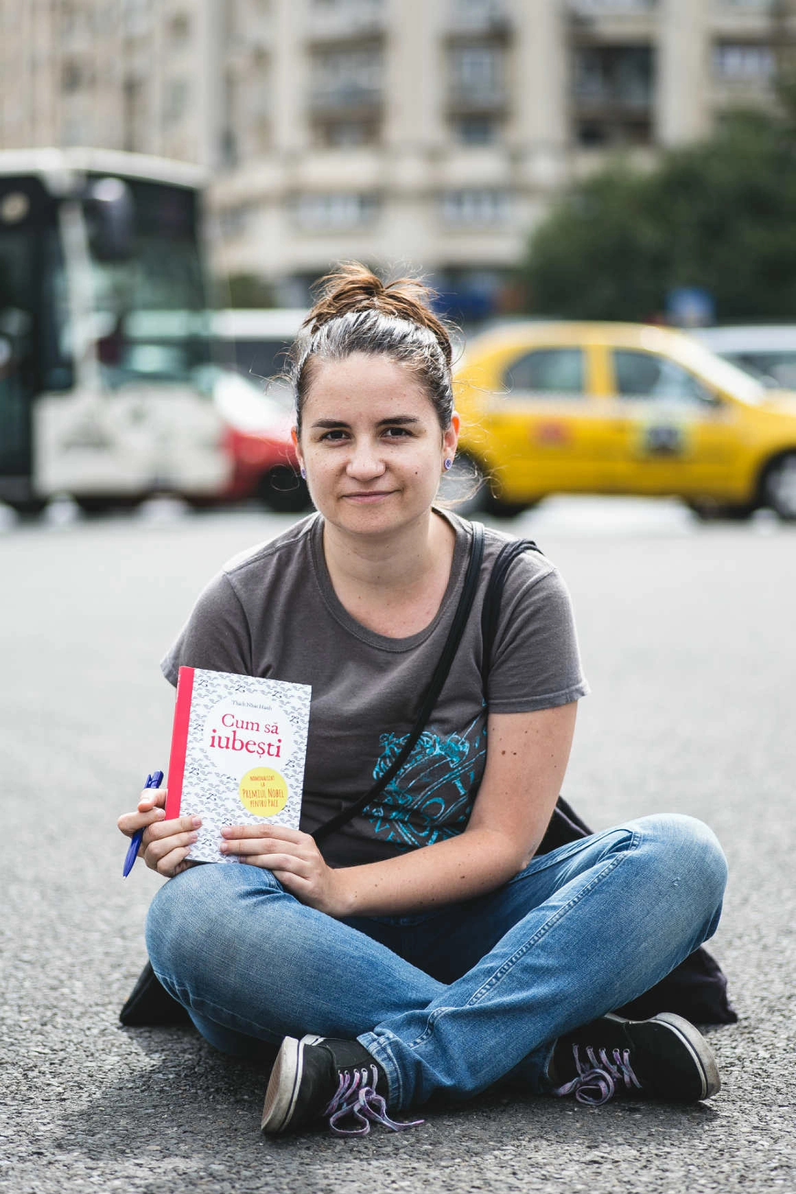 Adrian Șerban (economist) și o tânără care a dorit să nu-i publicăm numele, dar care ne-a spus ce a făcut-o să vină la protest: „Sunt editor de carte și am adus cărțile pentru că nu mi se pare ok ce vrea ministrul să facă cu toate aceste proiecte de lege. Nici manualul unic, nici editura unică.”