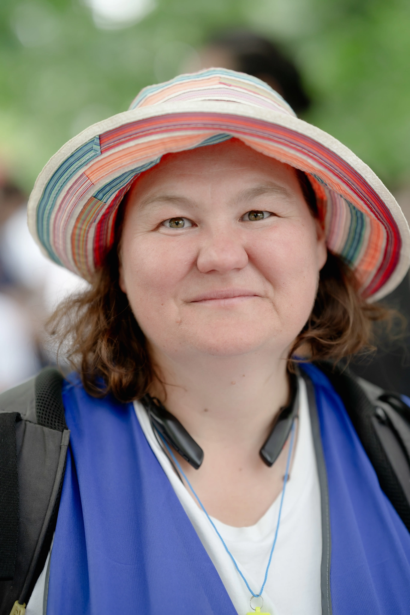 Iuliana Știrbu lucrează de șase ani în muzeu ca restaurator de hârtie, pe un salariu net de 3.500 de lei. În laboratorul de restaurare a dezvoltat un astm, despre care spune că „e clar că s-a întâmplat și pe fondul muncii. Până la urmă e un lucru pe care mi-l asum”. Vrea să lucreze în laboratoare mai bine dotate, în care nu trebuie să vină cu instrumente de acasă sau să aibă de ales între a cumpăra consumabilele necesare muncii de zi cu zi, respectiv a investi în aparatură mai performantă. A venit la protest să ceară lucrurile astea, dar nu uită nici de salariile decente pentru ea și colegii ei. „Mi se pare destul de dureros că sunt oamenii în pragul pensiei și își doresc să continue să lucreze, dar nu au satisfacția asta, că au fost răsplătiți pentru toată munca lor. Acum mi se pare foarte târziu, dar ar merita să iasă la pensie fericiți.”