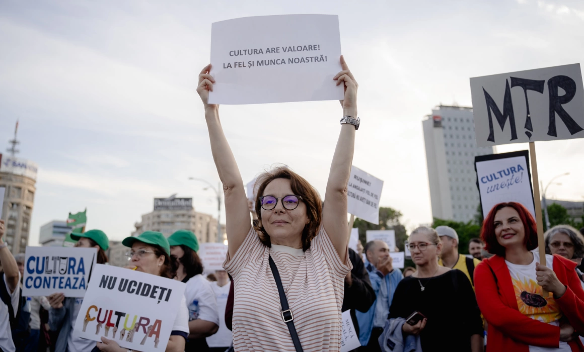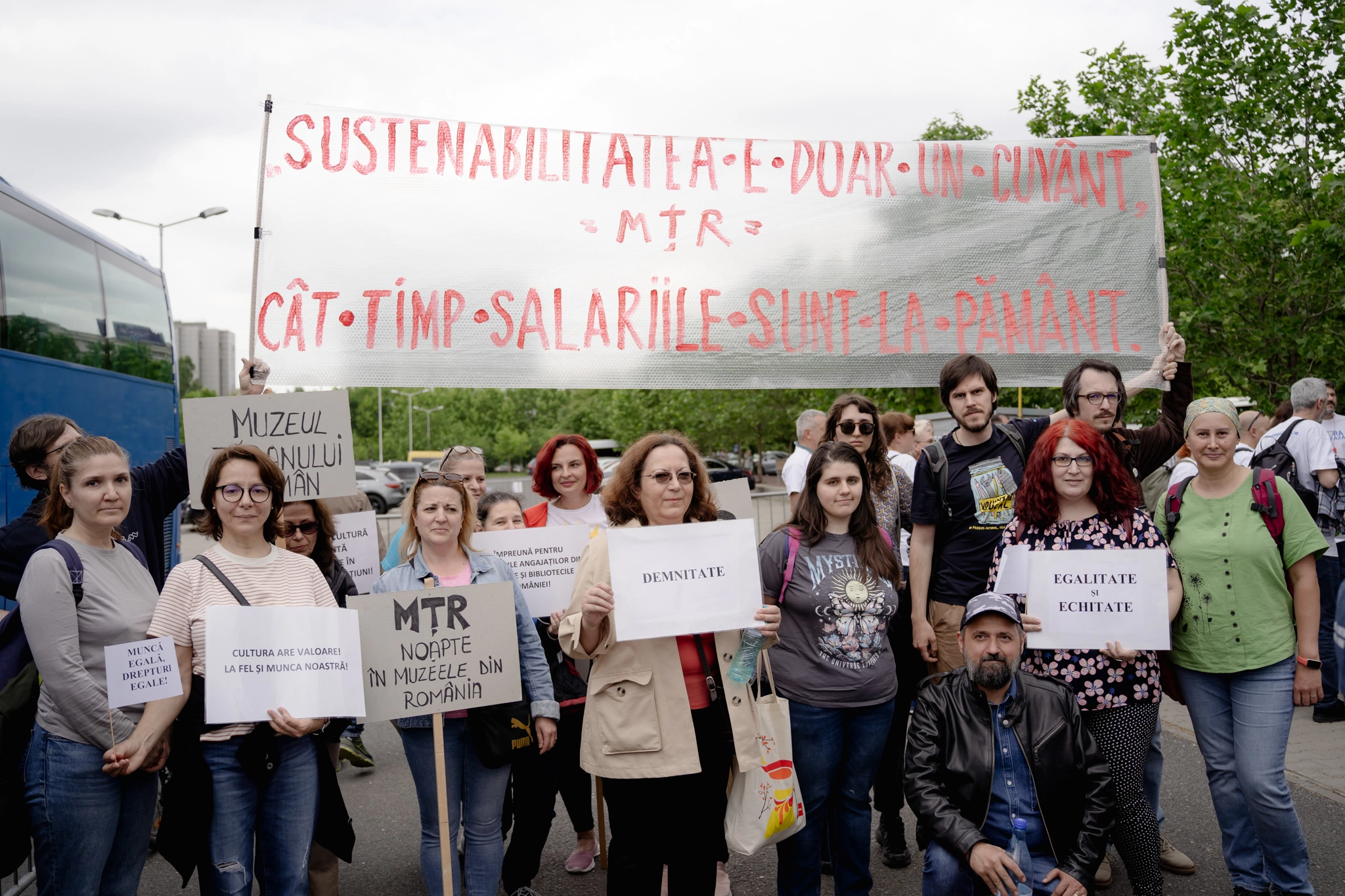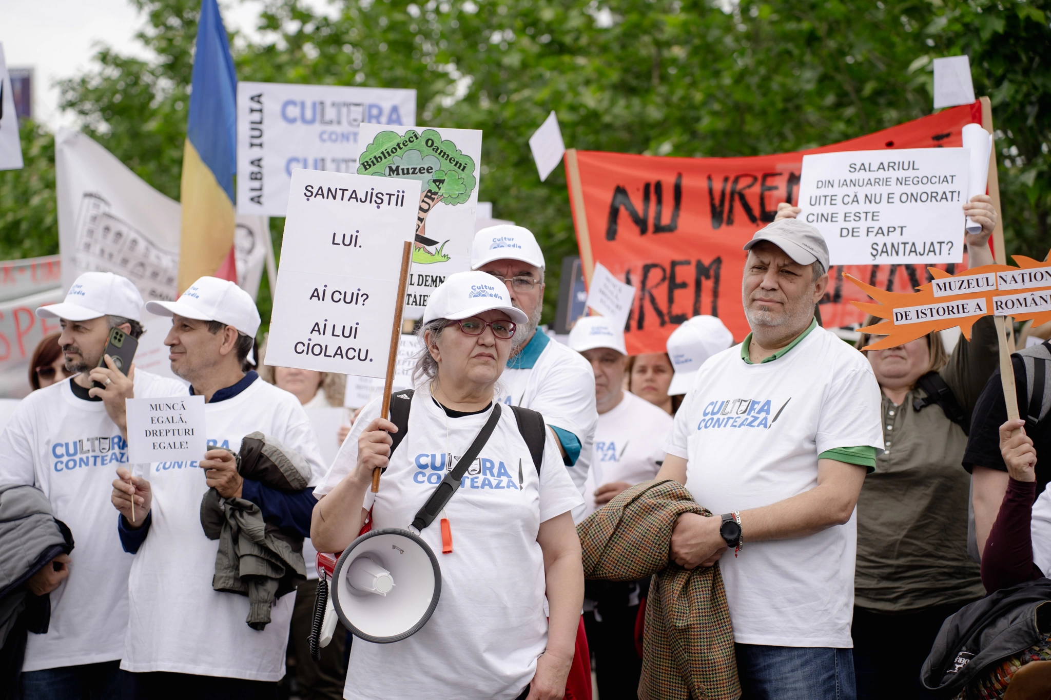 E la protest și în calitate de specialistă a MNAR, dar și ca să-și reprezinte colegii din sindicat. O parte au lucrat în timpul zilei și au venit aici după orele de program. Spune că nu cer doar salarii mai mari, „în mod oportunist”, ci „finanțarea corectă” a muzeelor și bibliotecilor, care funcționează de 30 de ani cu prea puțini bani și, în consecință, multe dintre ele cu prea puțini angajați. Și nu-i ușor să găsești personal pentru instituțiile astea, pentru că angajații lor se supracalifică în timp.