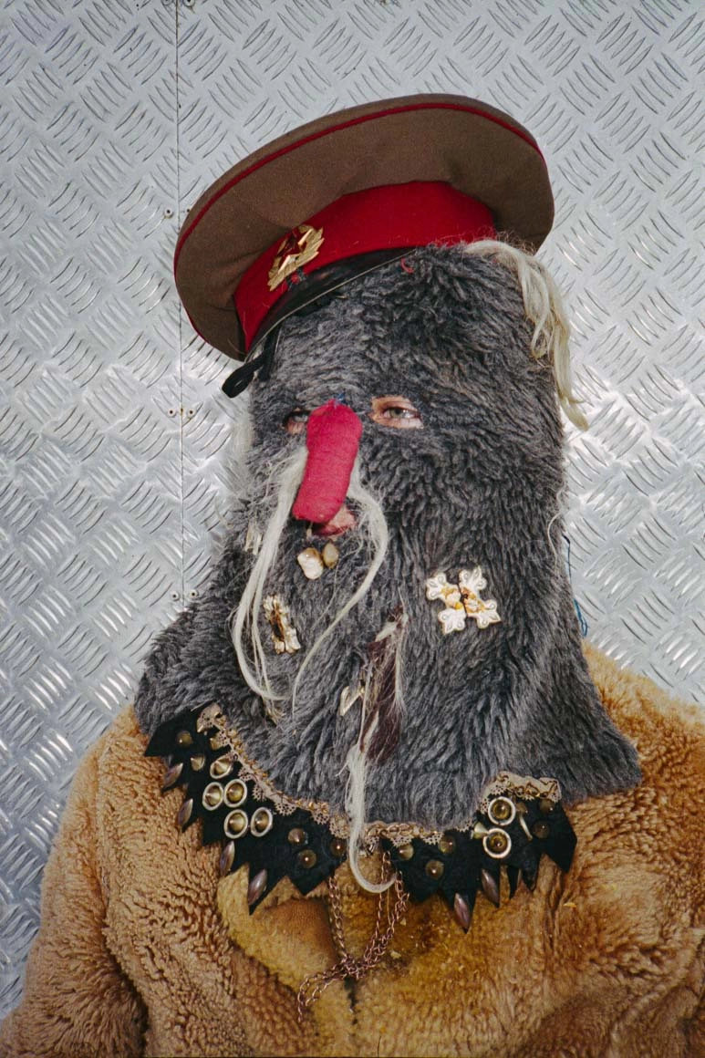 Portretele lui se apropie de personaje și nu se feresc nici de prezent, nici de trecut. Ne arată costumele clasice: baba, moșul, jandarmul, mireasa, dar și inserturile contemporane: coiful tapetat cu poze cu fete în sutien tăiate din reviste, hanoracul cu NY City. Insigna cu secera și ciocanul lângă un smiley albastru lângă steagul Statelor Unite. Măștile introduc supranaturalul în cotidian și amestecă urâtul cu frumosul, binele cu răul, vechiul cu noul, până iese un ritual prin care te eliberezi de toate și o iei de la capăt în noul an.