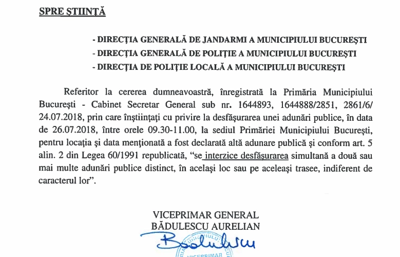 2. Protestele sunt interzise în fața Primăriei Capitalei, pentru că trotuarul este ocupat de „protestatari invizibili”