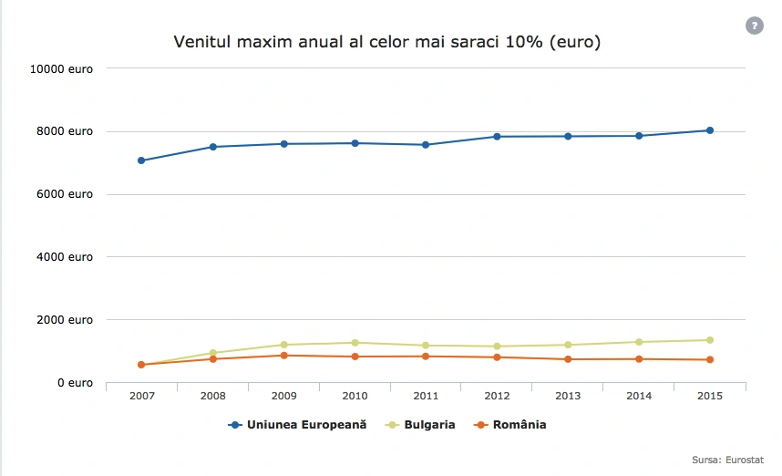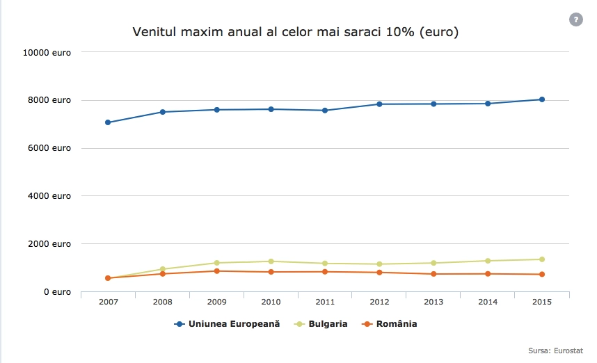Veniturile celor mai săraci oameni din România nu s-au mărit aproape deloc în zece ani, de la intrarea în UE. În schimb, tot restul populației a crescut ca nivel economic. De aceea, rata de disparitate între cei mai săraci și cei mai bogați este una dintre cele mai mari din Uniunea Europeană, explică Dani Sandu. „Societatea crește foarte mult. Dar cresc numai primii 60-70% din populație. Cei mai de jos nu se schimbă, nu se plimbă.”