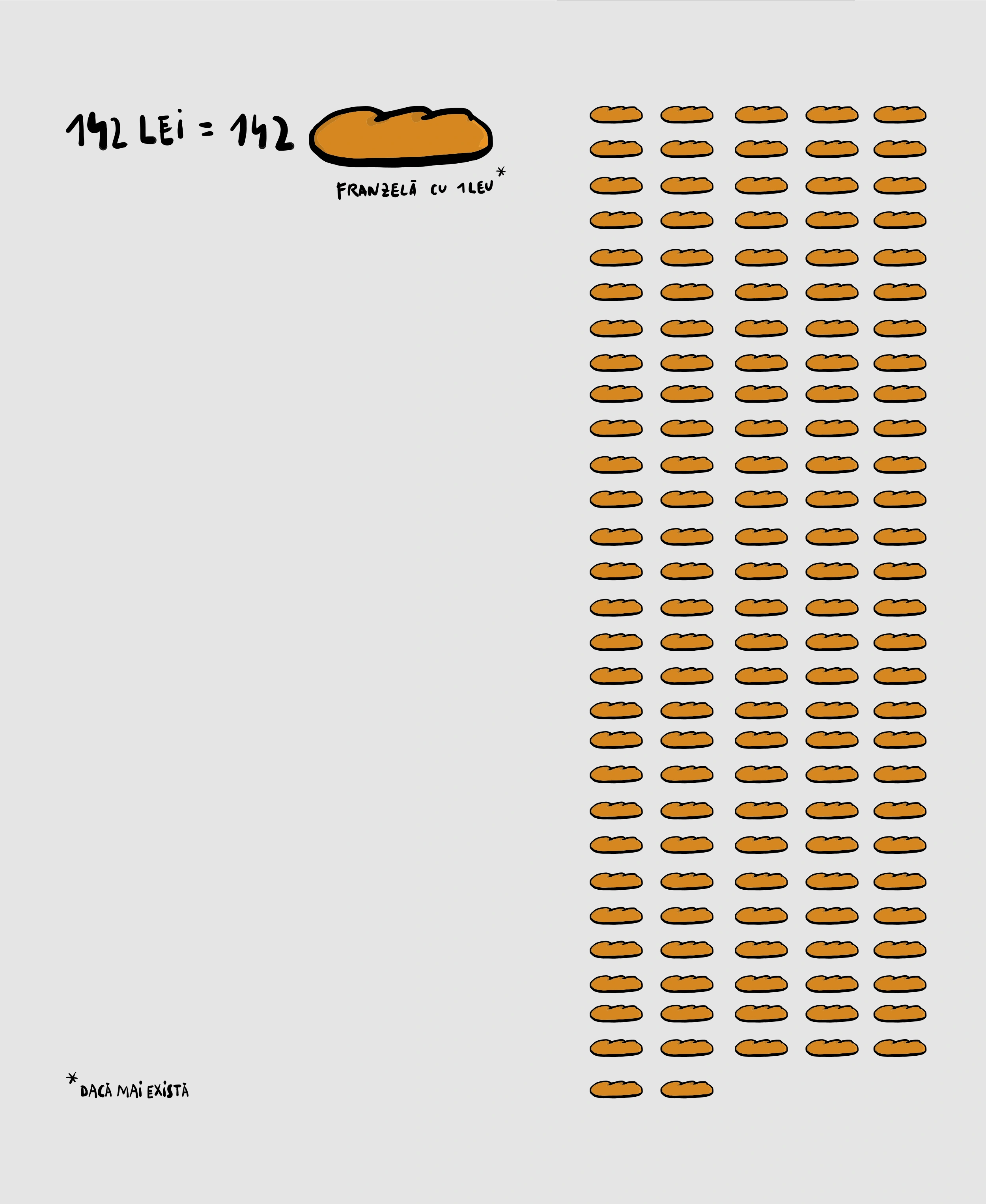 Cu banii ăștia îți permiți 142 de franzele pe lună. Sau îți plătești utilitățile și nu mai mănânci nimic. Sau îți iei un abonament de tren lunar și nu mai mănânci nimic.