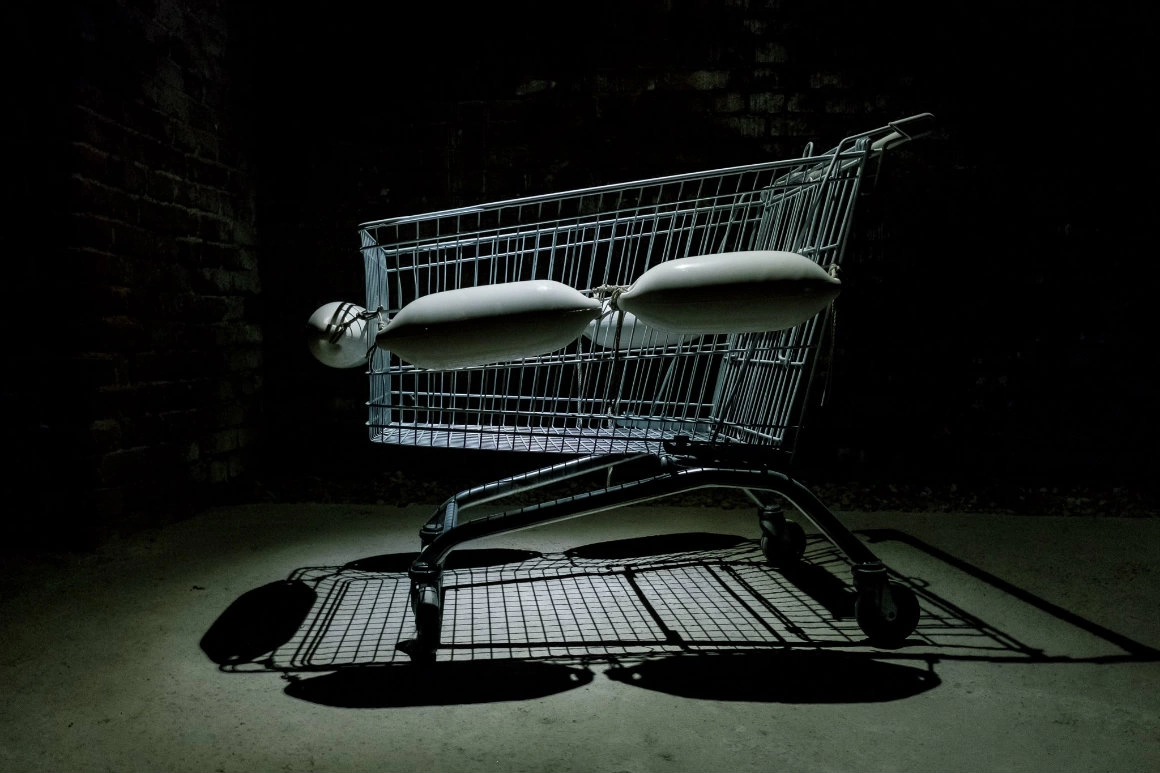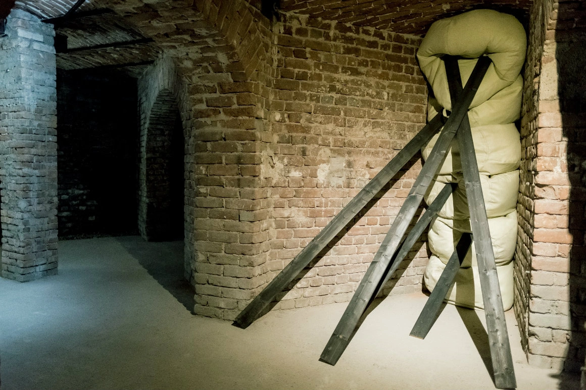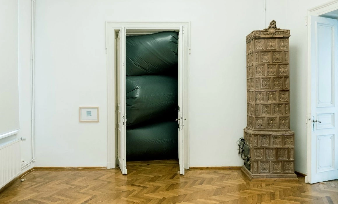 Etajul unu și pivnița unui imobil de secol XIX. Asta e galeria Eastwards Prospectus. Și cum urci la etaj, ca într-o sufragerie, ajungi într-un spațiu cu câteva mobile, așezate între scară și geam. Niște fotolii de designer și o masă rotundă. Și un sac mare de plastic, care blochează perfect intrarea în cealaltă cameră, marcată de o ușă mare burgheză, de trei metri înălțime, cu două canaturi.