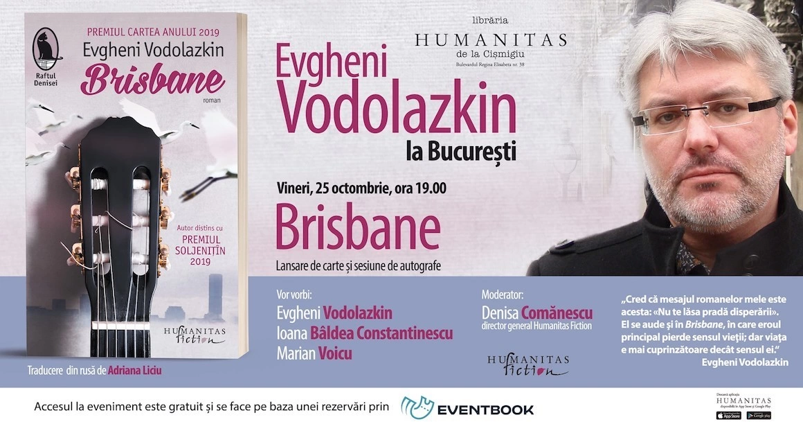 ✔Evgheni Vodolazkin la lansarea romanului „Brisbane“, Librăria Humanitas de la Cișmigiu, vineri, 25 octombrie, de la 19