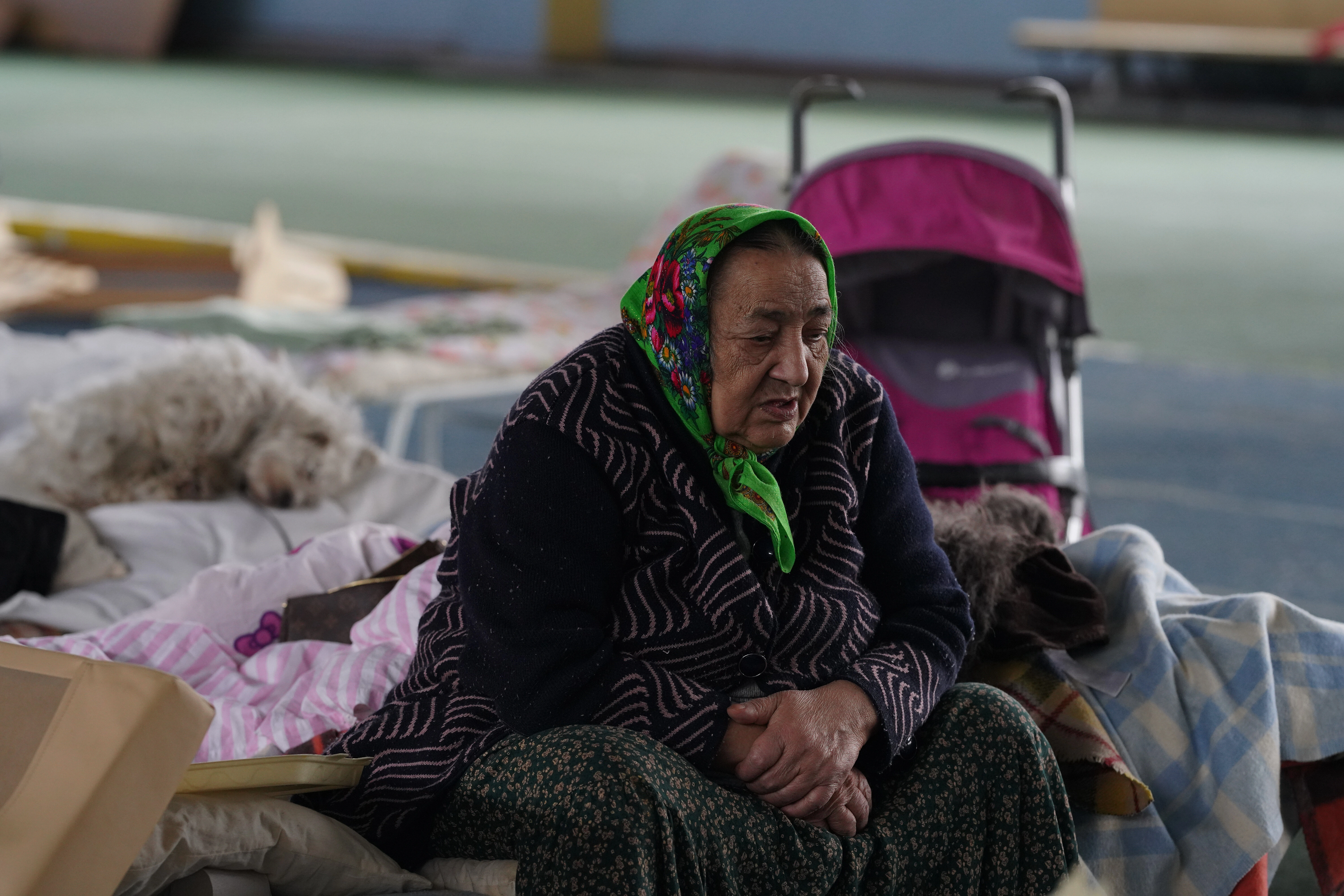 Pe un pat de campanie din complexul sportiv Manejul, Kireș, o bunică în vârstă de 74 de ani din Odesa, așteaptă de 4 zile ca fiica ei care a ajuns în Ungaria să îi trimită pașaportul pe care l-a uitat la ea sau să primească unul nou de la Ambasada Ucrainei. Cealaltă fată care e cu ea ne arată poză cu pașaportul pe telefon. Bunica a fost oprită în vama Sculeni în timp ce voia să intre împreună cu copiii și nepoții din Republica Moldova în România. A plecat de acasă mai mult de gura lor. „Vreau să se termine războiul și să ne întoarcem în Odesa. Vreau acasă. Sunt bătrână și bolnavă”.