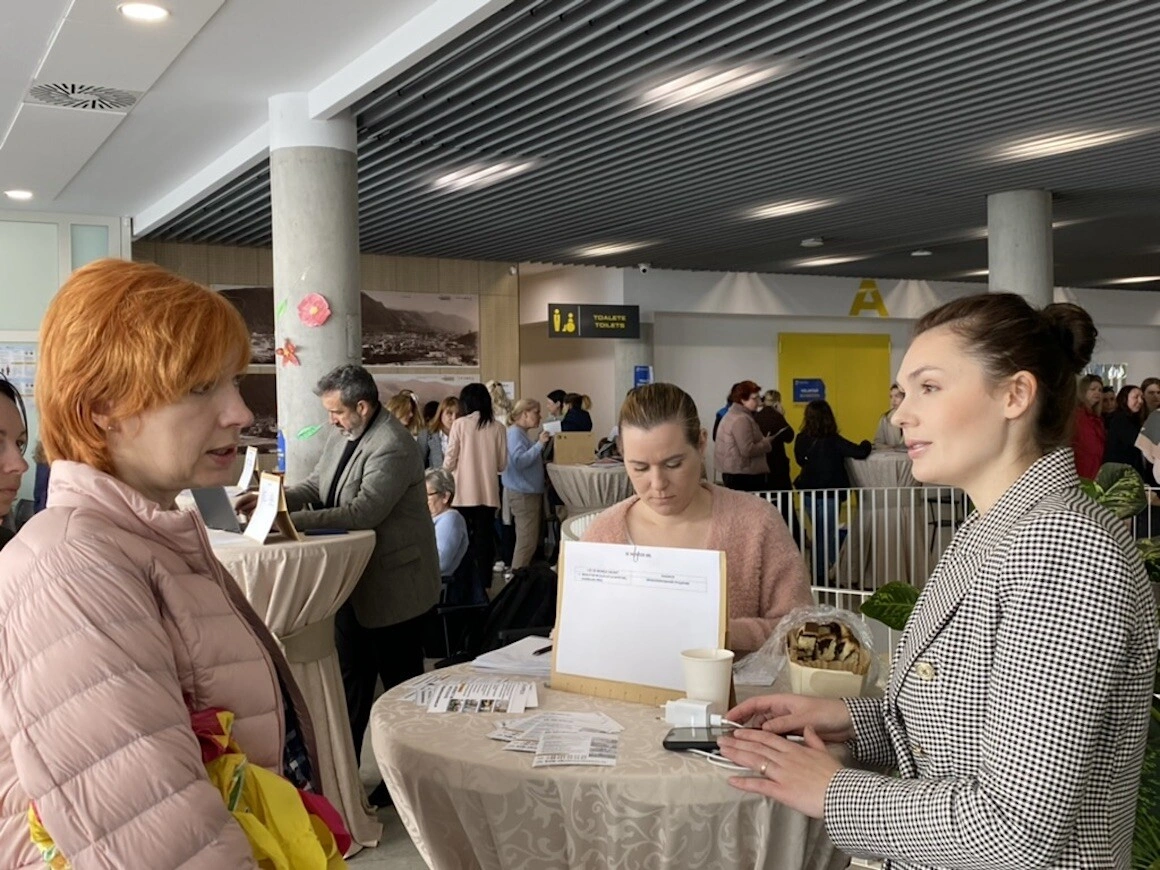 Multe femei ucrainene venite la târgul de joburi se opresc și pun întrebări la standul de educație. Unele oftează când află că e vorba tot de voluntariat. S-ar fi bucurat de un job mai apropiat de domeniul lor, dacă acesta ar fi fost plătit.